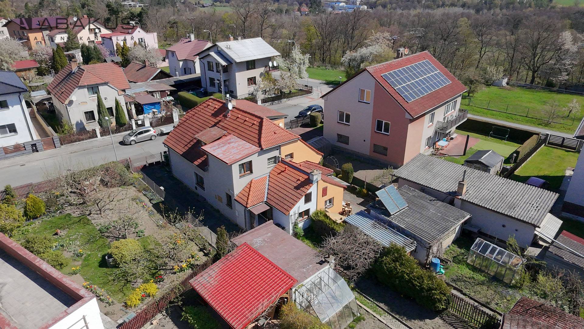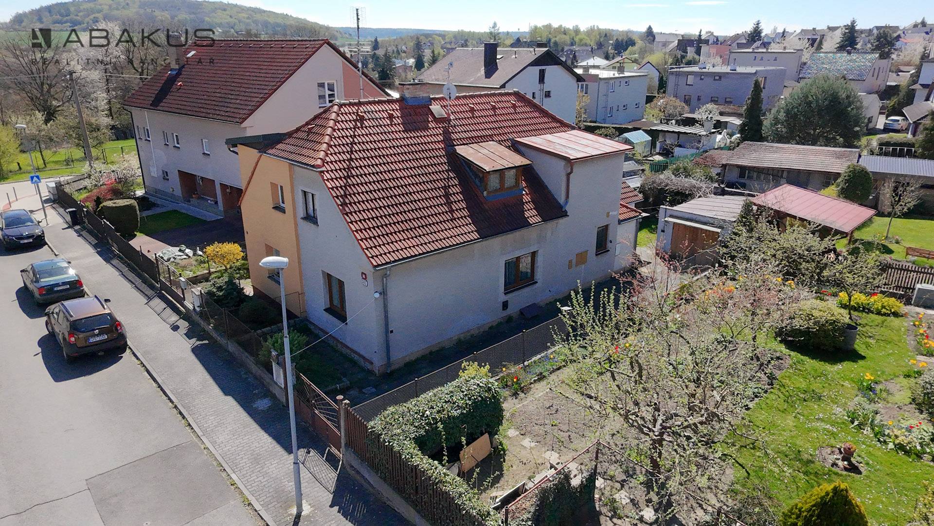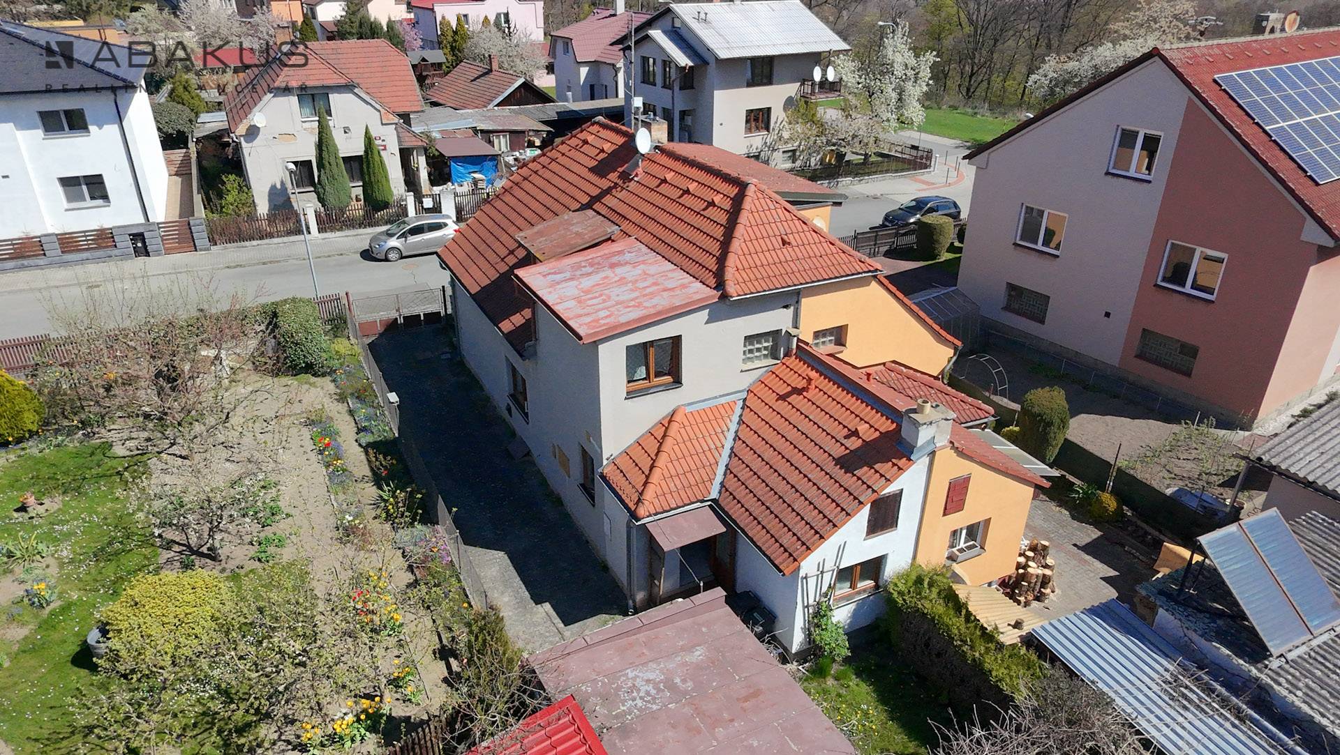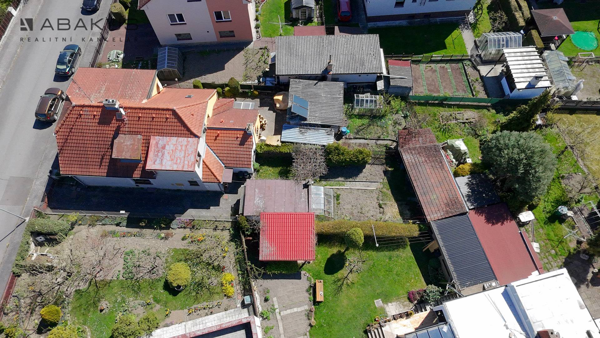 K domu náleží menší rovinatý pozemek o výměře 290 m², který poskytuje prostor pro zahradu, odpočinek či drobné úpravy dle Vašich představ. Součástí je také samostatná garáž z r. 1970 se zastavěnou plochou 27 m² a zděný sklad v zadní části pozemku.