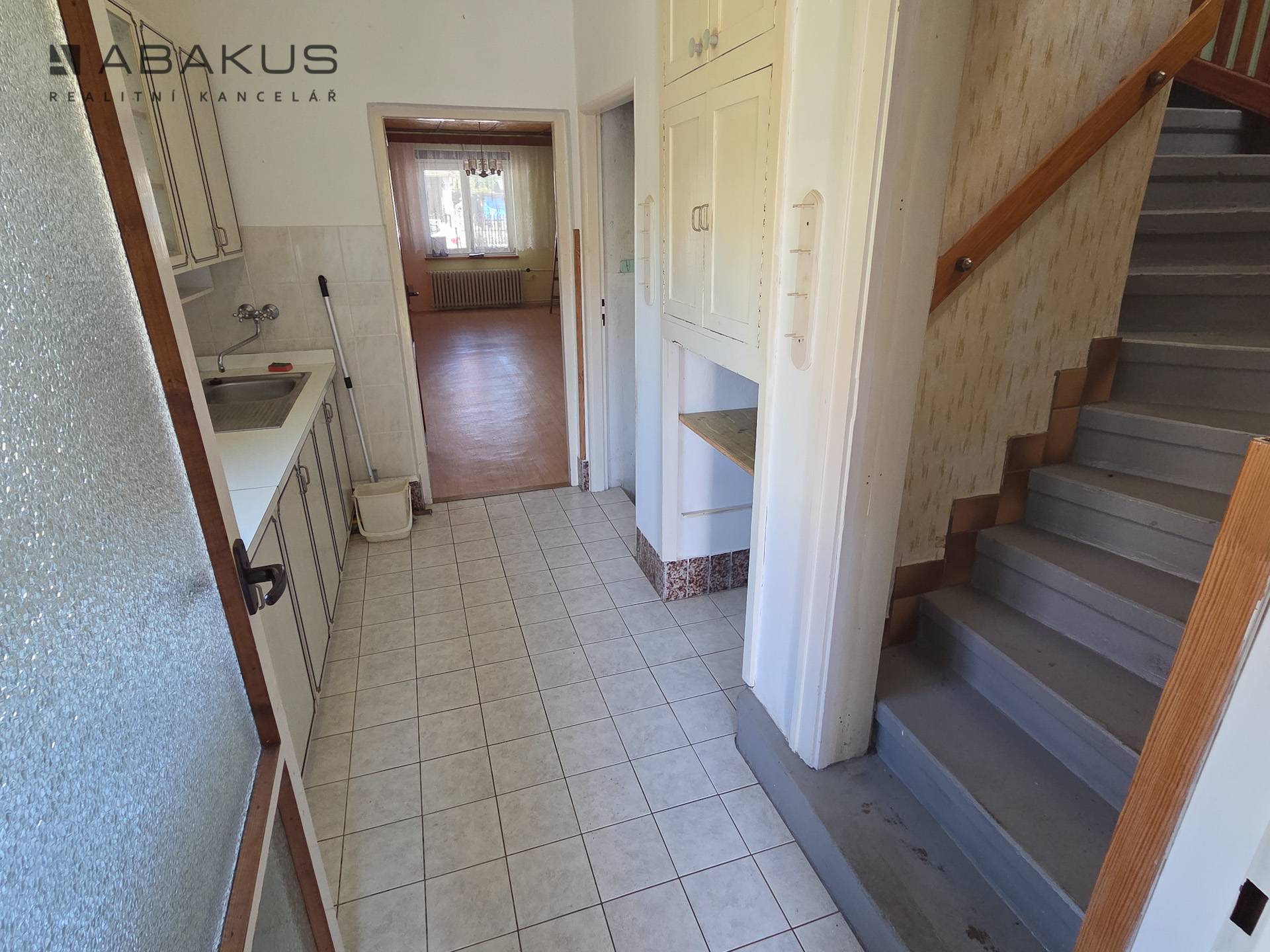 z kuchyně se dostanete do prostorného obývacího pokoje a jsou zde shody do sklepa i do podkroví