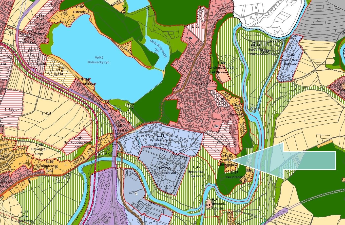 Město Plzeň má platný územní plán, ve kterém jsou zřejmé přesnější definice využití území označeného v územním plánu pod číslem 1_17 Nad Berounkou. Prostorové a kompoziční požadavky na rozvoj lokality a ochranu a rozvoj jejích hodnot, tj. rozvíjet rekreační charakter lokality, rozvíjet drobnou izolovanou strukturu zástavby, zástavba musí svým měřítkem a uspořádáním doplnit stávající okolní strukturu dané lokality a odpovídat převládající hladině zástavby a současně odpovídat pojmu „objekt pro individuální rekreaci“ dle definice pojmů v úvodu výrokové části územního plánu, maximální zastavěná plocha objektů určených pro individuální rodinnou rekreaci a zahrádkářských chat bude odpovídat velikosti zástavby dle schématu D v územním plánu. Rekreace individuální – prostorová regulace.