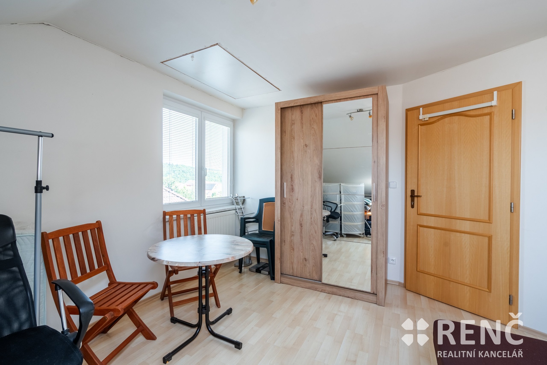 K prodeji nabízíme samostatně stojící, třípodlažní rodinný dům s garáží a mírně svažitou zahradou. Prostorný rodinný dům má dvě obytná podlaží a suterén s technickými místnostmi. Dům má čtyři samostatné pokoje, tři koupelny, obývací pokoj s kuchyňským koutem, terasu orientovanou do ulice, balkón v podkroví, v suterénu dílnu, sklad a garáž.