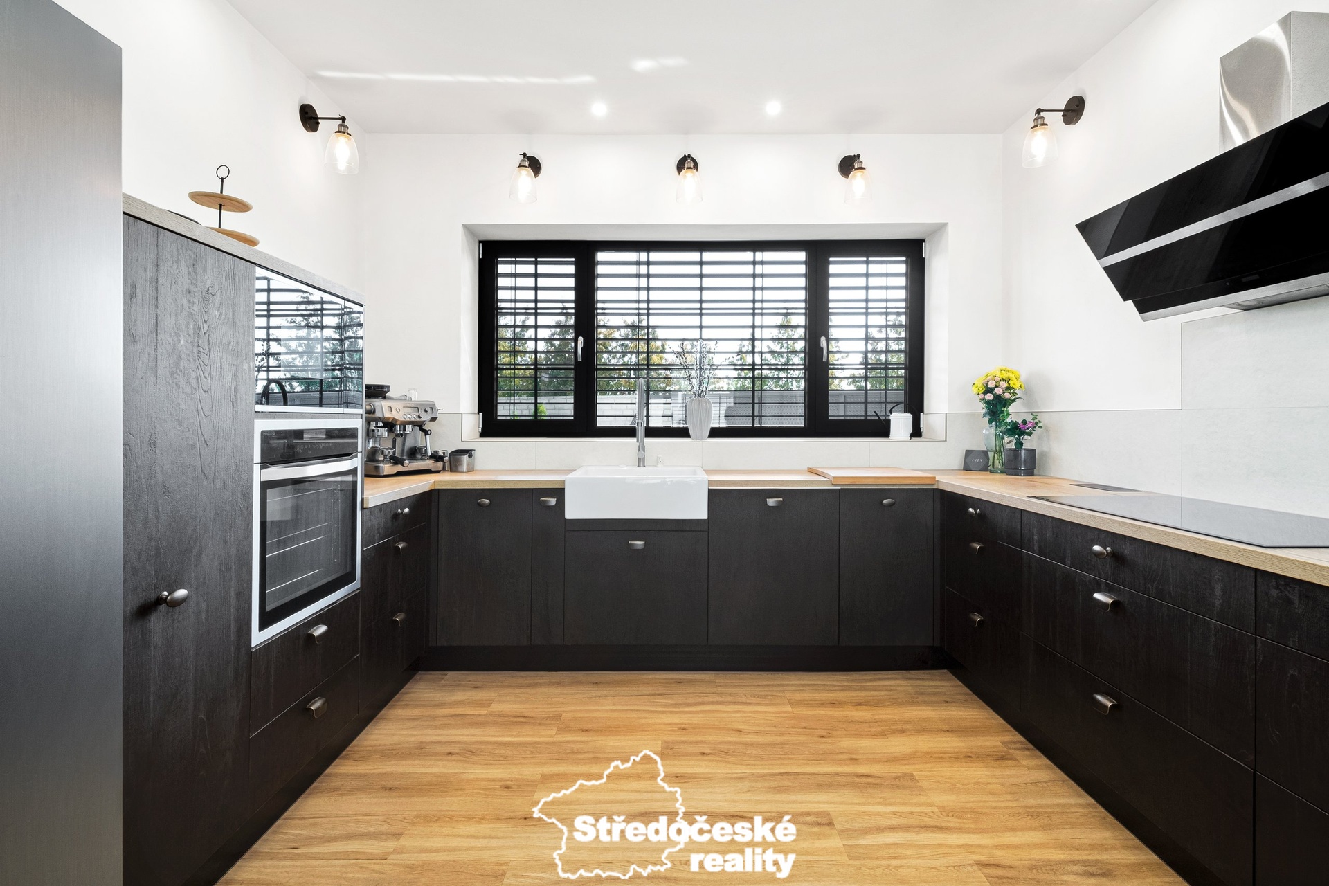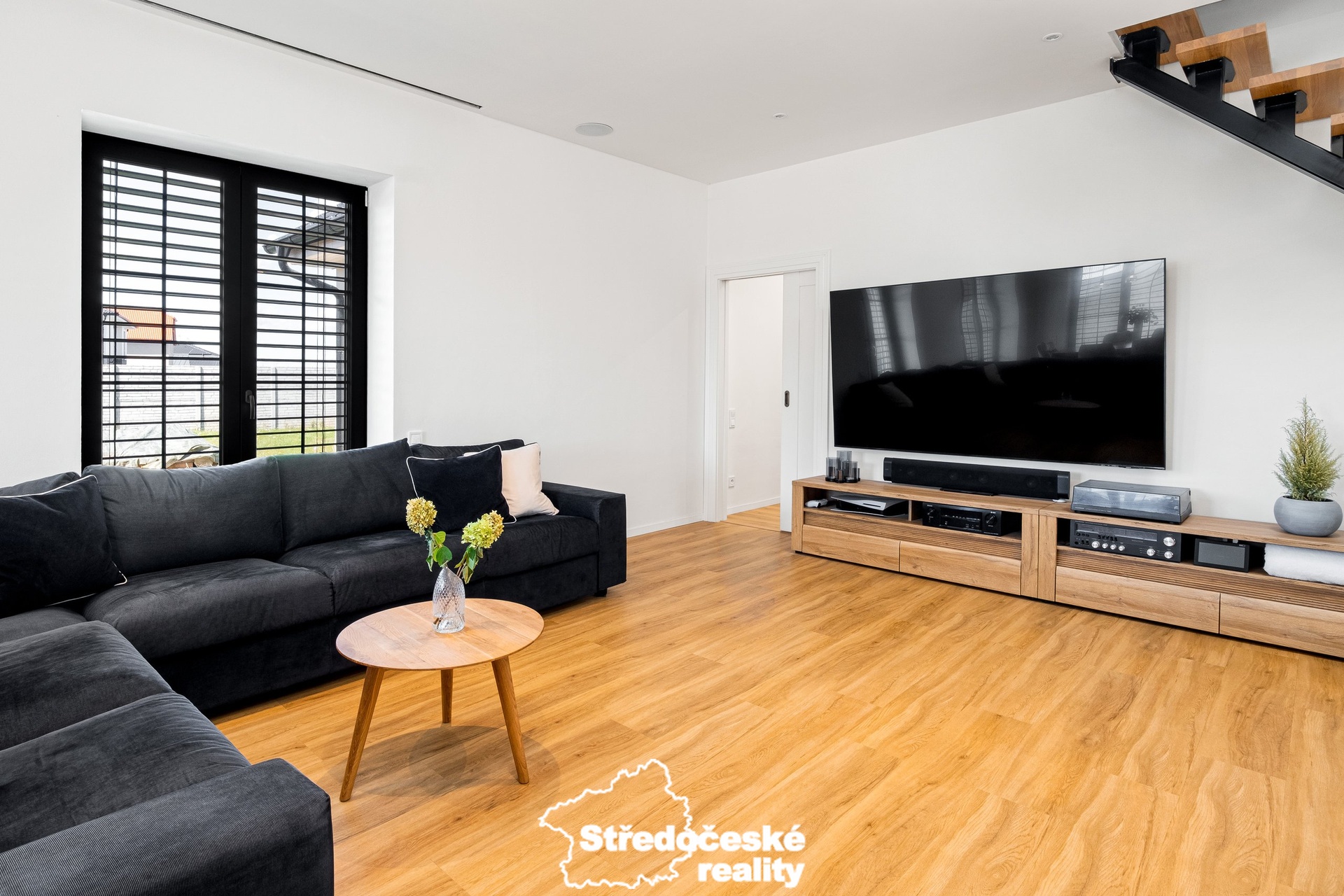 • prostorný a světlý obývací pokoj s přímým vstupem na terasu je propojen s moderní kuchyní, na míru vybavenou spotřebiči i vestavěnou vinotékou,