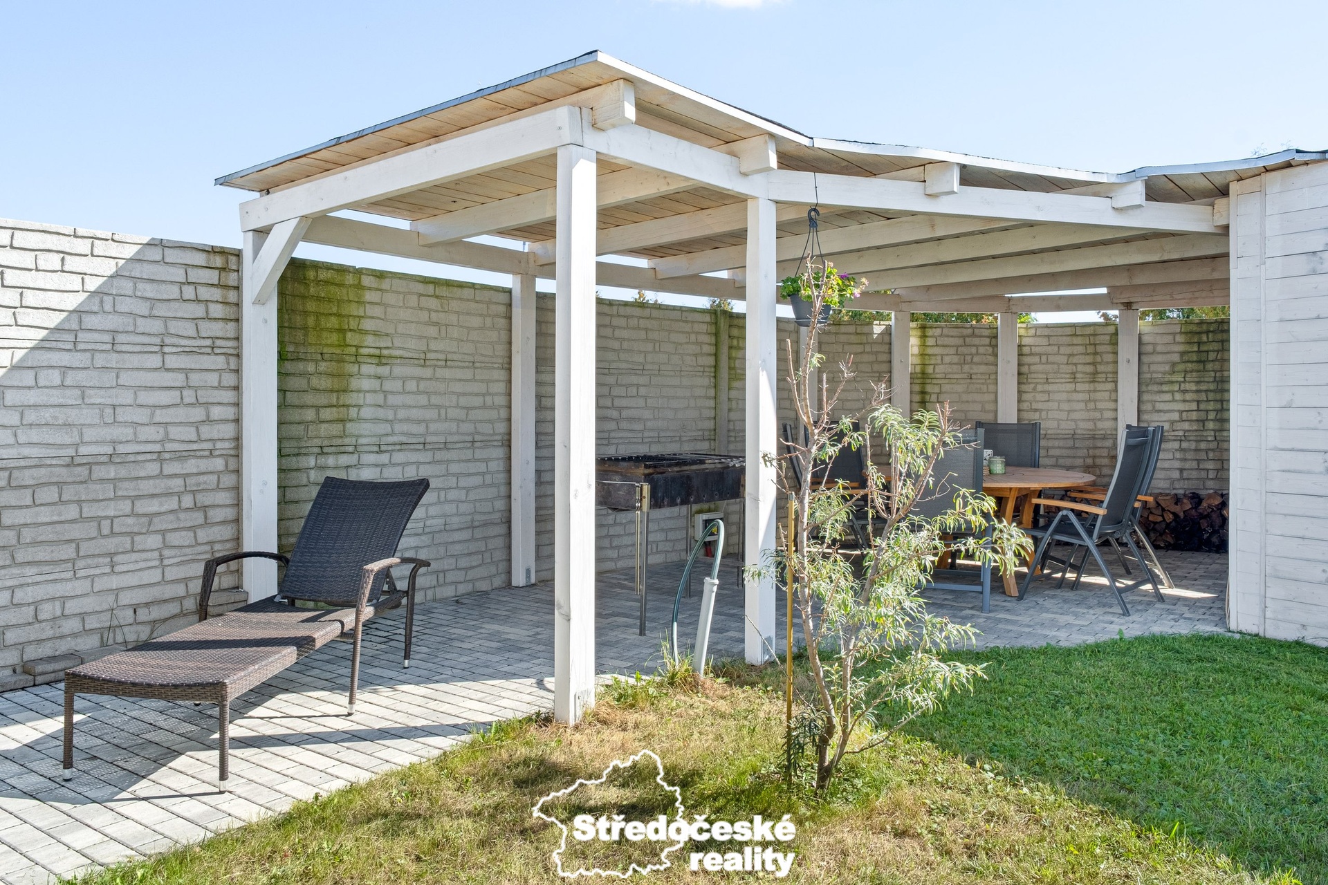 Pozemek o velikosti 784 m² je kompletně oplocený. V přední části najdete pergolu s posezením a dřevěnou kůlnu.