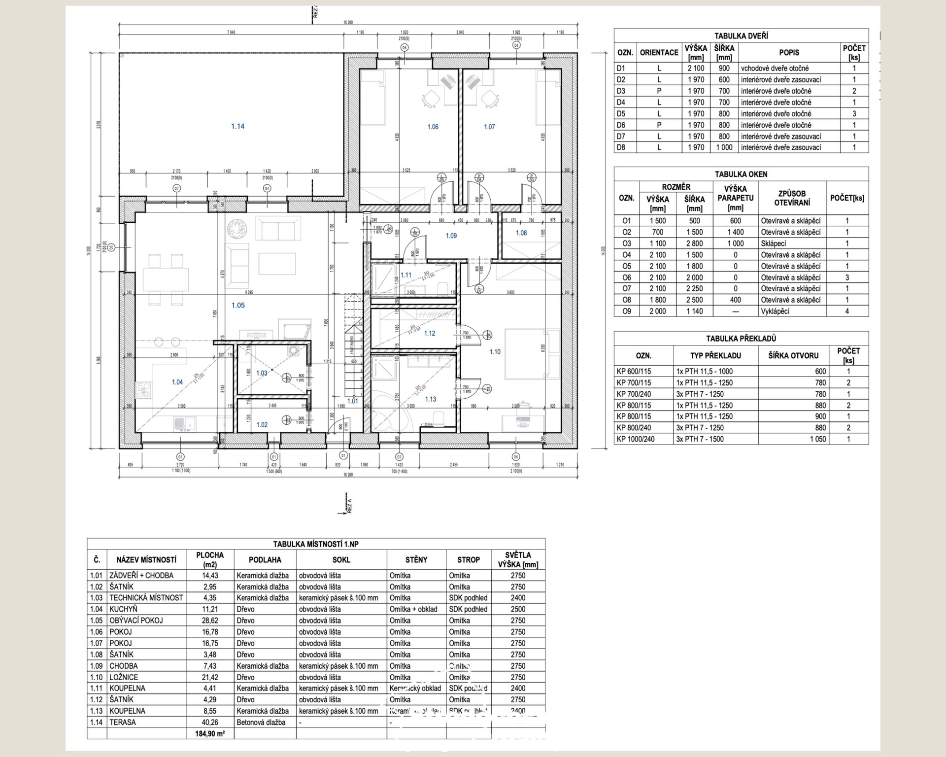 Přízemí (140 m² + terasa 40 m²):