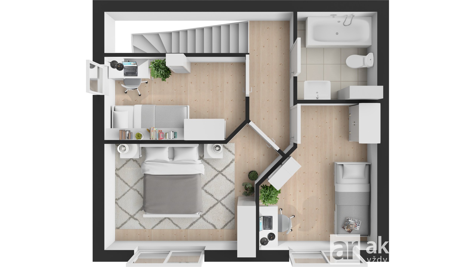 - komoru - uzamykatelný úložný prostor (pro kola, sezónní vybavení) – 4,1 m²