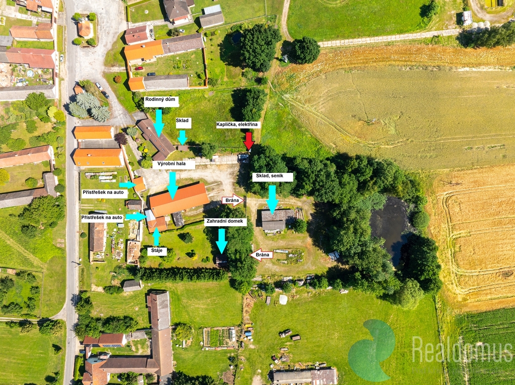 Celková výměra pozemku činí 7 758 m2, pozemek z větší části oplocen, opatřen dvěma branami a vstupním vjezdem do komplexu. K dispozici územně plánovací informace.