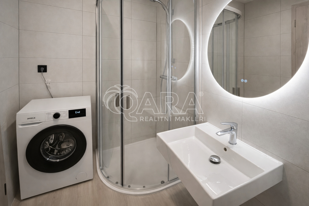 Novostavba nabízí bydlení v energeticky úsporném domě (B) s nízkými provozními náklady. Při stavbě jsou využity vysoké standardy a nejmodernější technologie. Zdroj tepla je zajištěn tepelným čerpadlem, byty jsou vybaveny rekuperací vzduchu a vodním podlahovým topením (s doplňkovou funkcí chlazení). Okna v bytech mají izolační trojskla. V rámci projektu je umístěna kolárna a venkovní prostor s parkovou úpravou. Byt se nachází ve 2. nadzemním podlaží. Vybavení na fotkách je součástí bytu (myčka nádobí, pračka, lednice s mrazákem, mikrovlnná trouba, rozkládací postel, skříň).