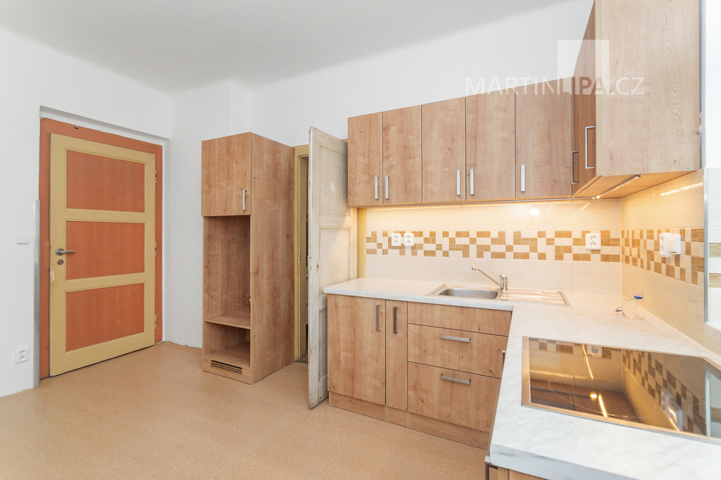- dva neprůchozí pokoje, větší orientovaný do zahrady, menší + kuchyň do klidné jednosměrné ulice