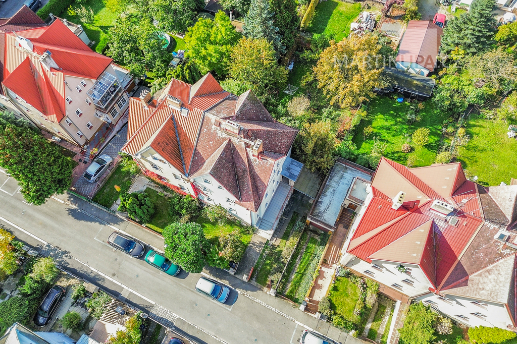 Strašnice. Klidná vilová čtvrť, pár kroků od centra Prahy a přesto úplně jiný svět. Ve Vykáňské ulici stojí dům se třemi bytovými jednotkami a v jeho nejvyšším, tedy druhém patře se právě prodává částečně podkrovní byt o dispozici 2+1 a velikosti 58,4 m².