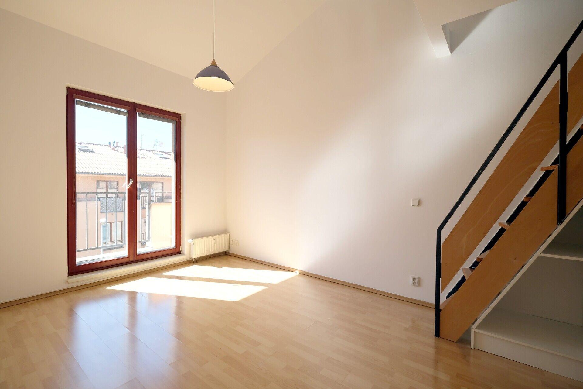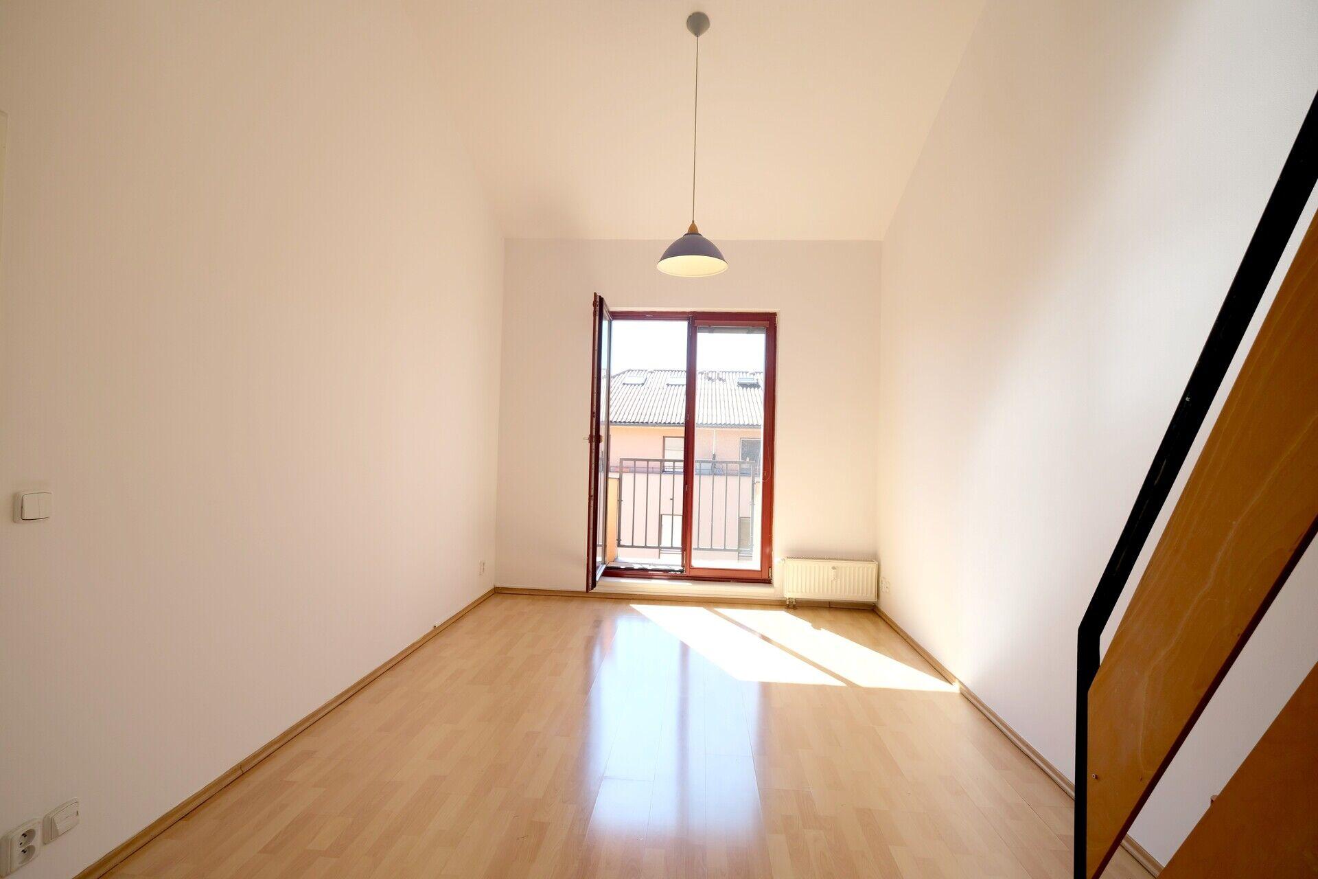 Příjemné klidné bydlení v atypickém bytě 2+kk s podkrovním patrem a úzkým balkonem přes celou šíři bytu. Byt se nachází ve 2. patře dvoupatrové novostavby v docházkové vzdálenosti od metra Lužiny.