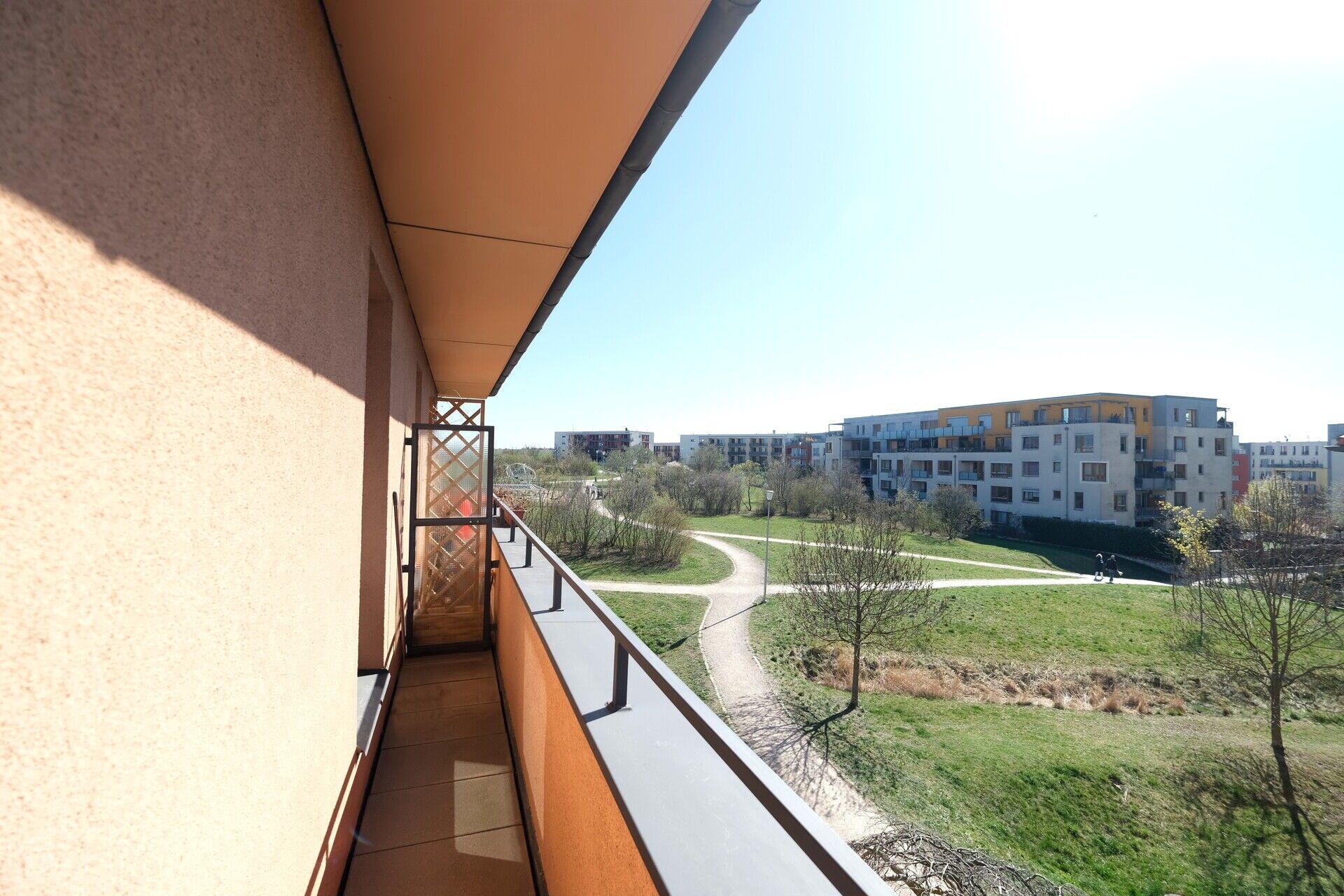Okna bytu i balkon jsou orientovány na jih. Z okna vidíte na parčík a dětské hřiště.