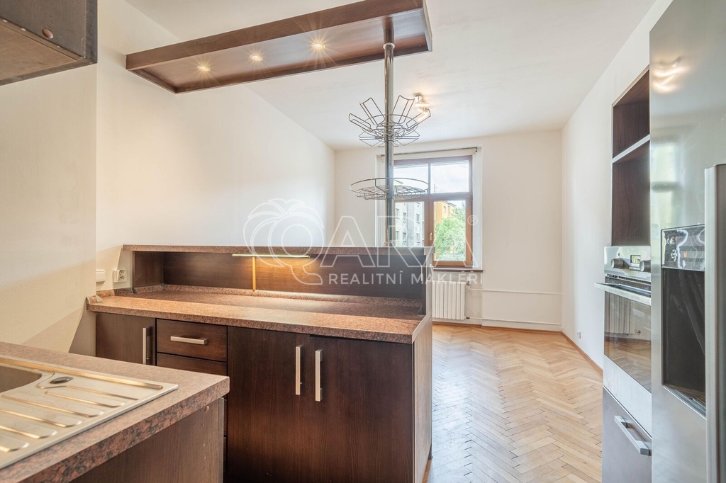 V bytě je k dispozici kuchyňská linka s varnou deskou, troubou, digestoří, myčkou a ledničkou. V komoře je příprava pro umístění pračky. Jinak se byt pronajímá nezařízený. V bytě jsou parkety a laminátová podlaha, obložkové zárubně, v koupelně, komoře, předsíni a na toaletě dlažba.