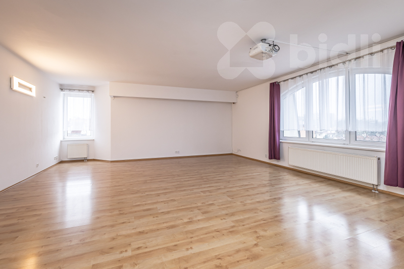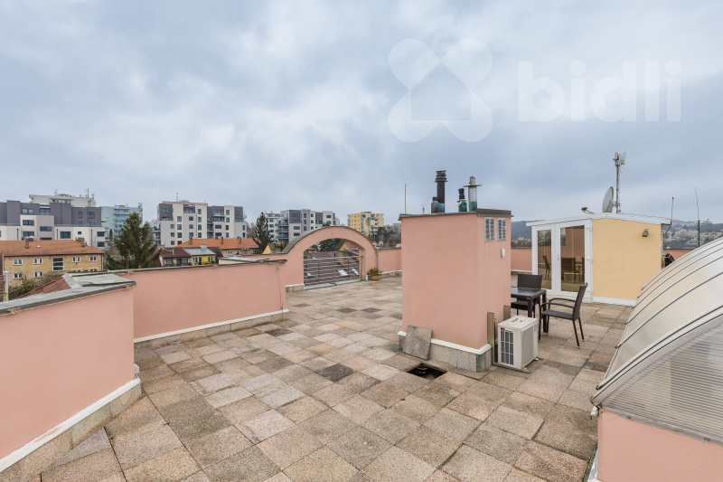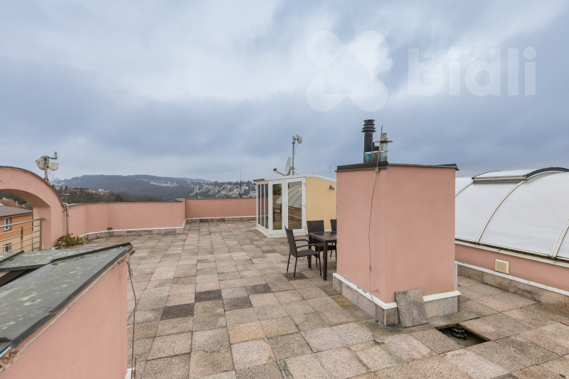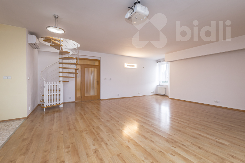 Mezonetové byty se soukromou střešní terasou se na trhu k pronájmu objevují jen zřídka. Tento prostorný byt nacházející se v posledním 5NP o dispozici 4+kk a ploše 159 m2 nabízí prostor a komfort, které jsou dnes typické spíše pro bydlení v rodinném domě.