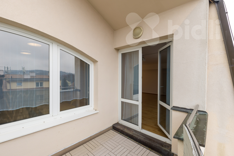Dominantou bytu je vlastní střešní terasa o velikosti 120m2, která přirozeně rozšiřuje obytný prostor a vytváří plnohodnotné venkovní zázemí. Díky umístění v posledním patře byt zároveň zajišťuje vysokou míru soukromí.