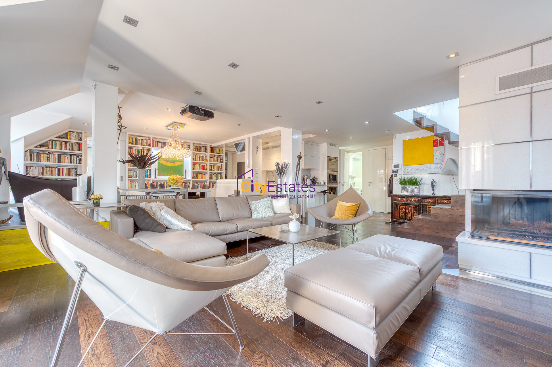 Představujeme vám mimořádný mezonetový byt 5+kk s pěti balkony a dvěma terasami, s celkovou plochou 241 m². Obytná plocha bytu je 213 m² a dalších 28 m² tvoří terasy. Tento unikátní prostor s výhledy na historické centrum Prahy se nachází v klidné ulici, jen několik kroků od Staroměstského náměstí. Byt, situovaný v nenápadném domě s pouhými pěti bytovými jednotkami, zajišťuje svým obyvatelům naprosté soukromí a klid, a zároveň výjimečnou atmosféru historické Prahy.