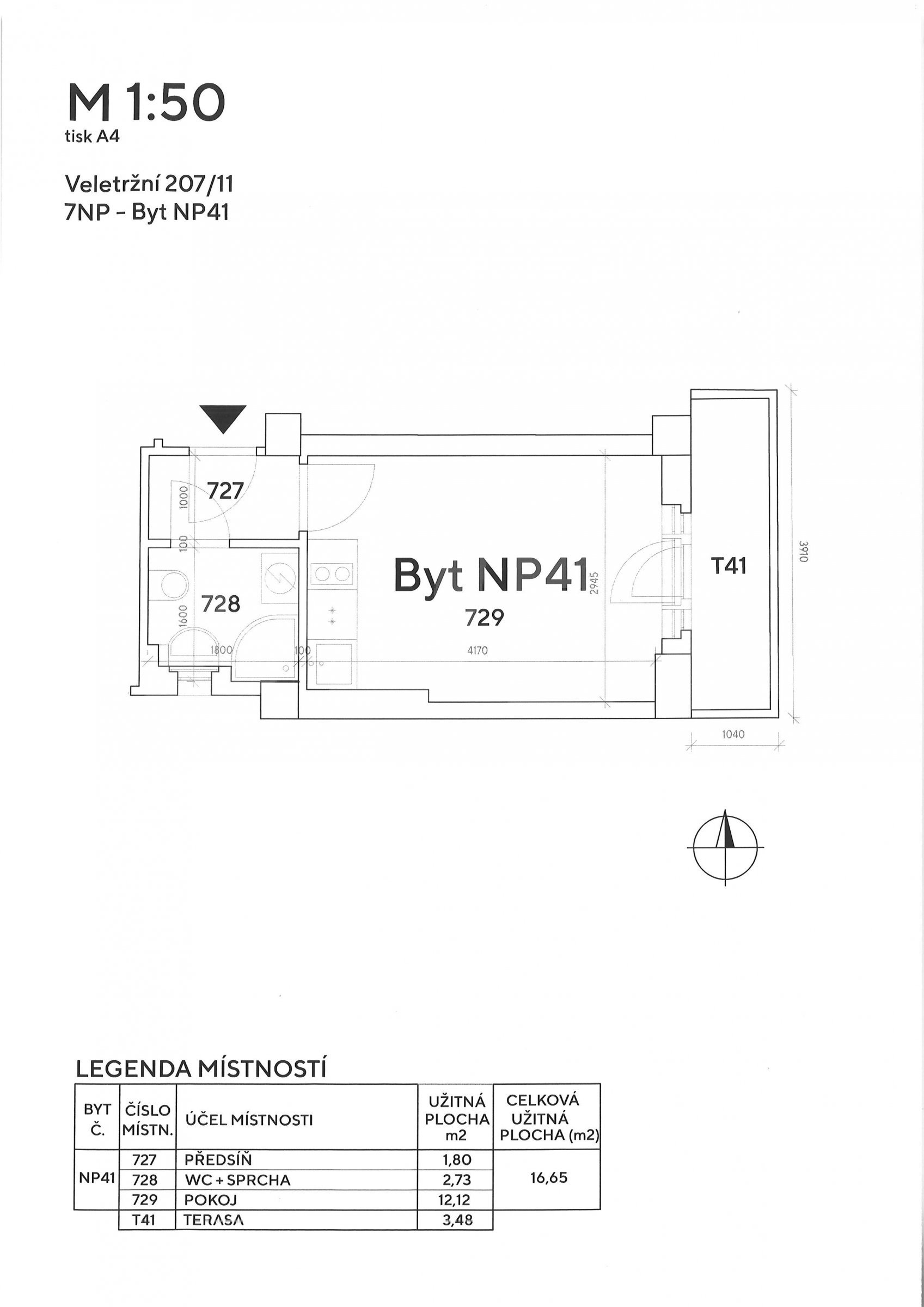 Dispozice bytu:1+kk