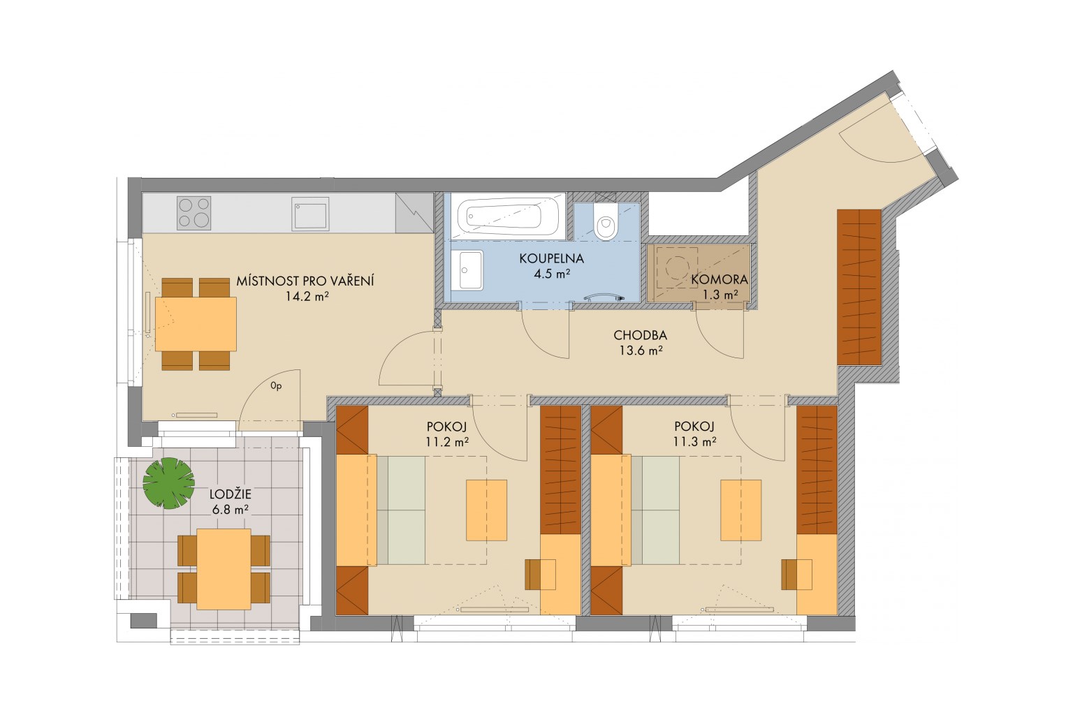 | Dispozice/podlahová plocha: | 2+1/59 m² |