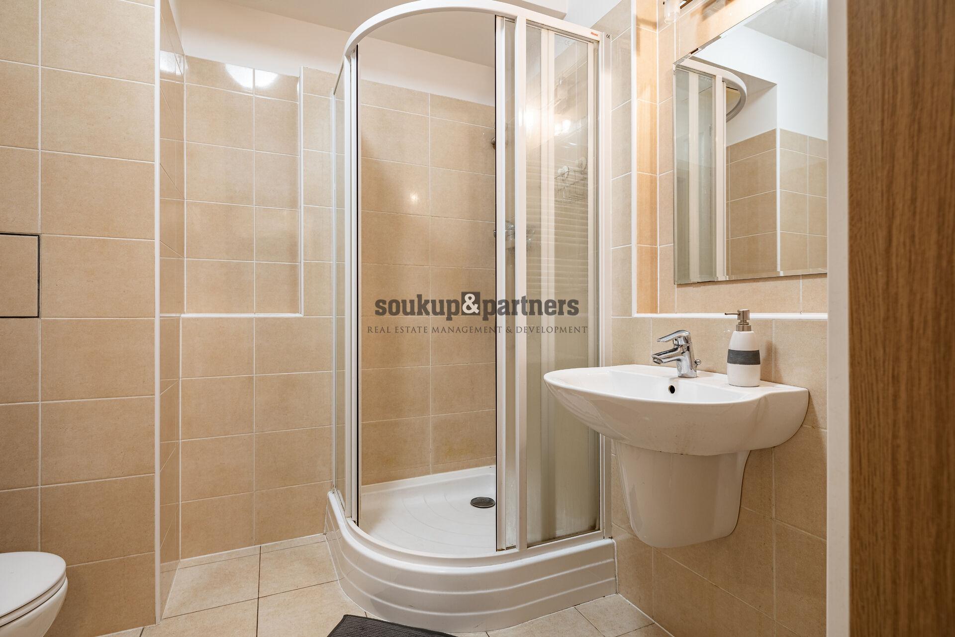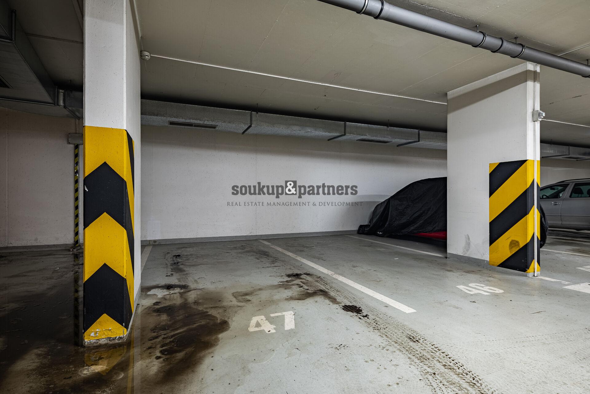Součástí nabídky je možnost pronájmu podzemního garážového stání za 2 000 Kč měsíčně.