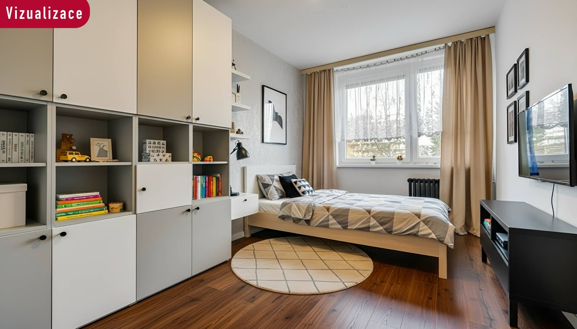 Byt má ideální orientaci – ložnice a dětský pokoj na sever zajišťují příjemné klima pro spánek i studium, obývací pokoj se zasklenou lodžií na jih nabízí celodenní slunce a útulnou atmosféru. Tato kombinace přináší maximální komfort a patří k nejvyhledávanějším.