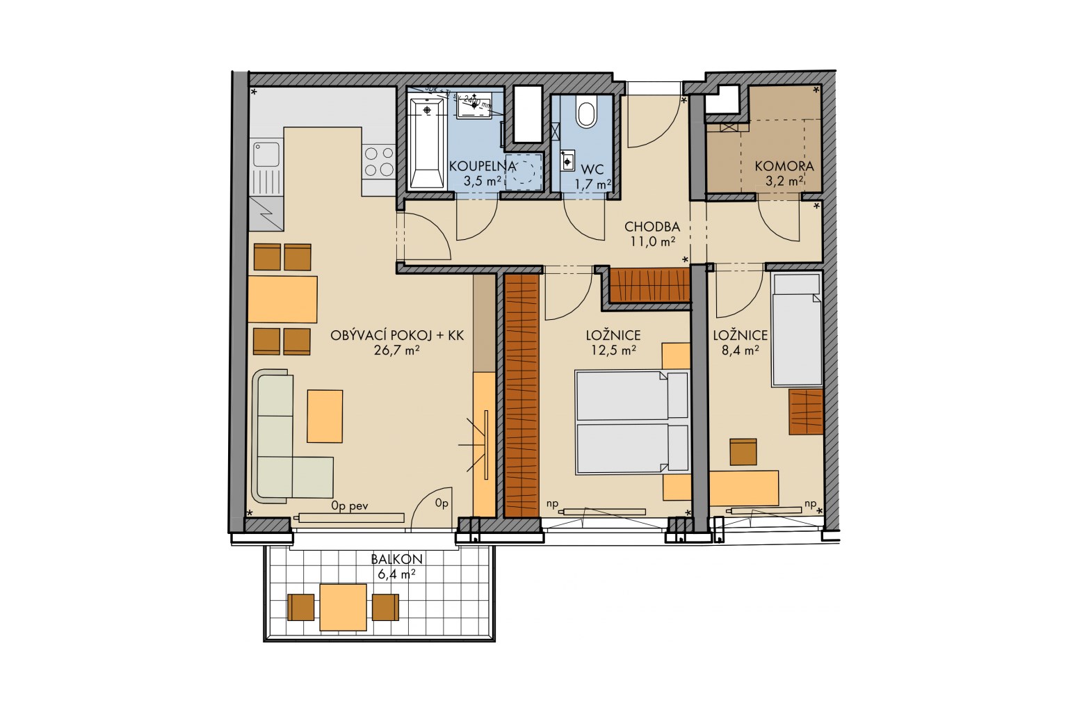 | Dispozice/podlahová plocha: | 3+kk/72 m² |