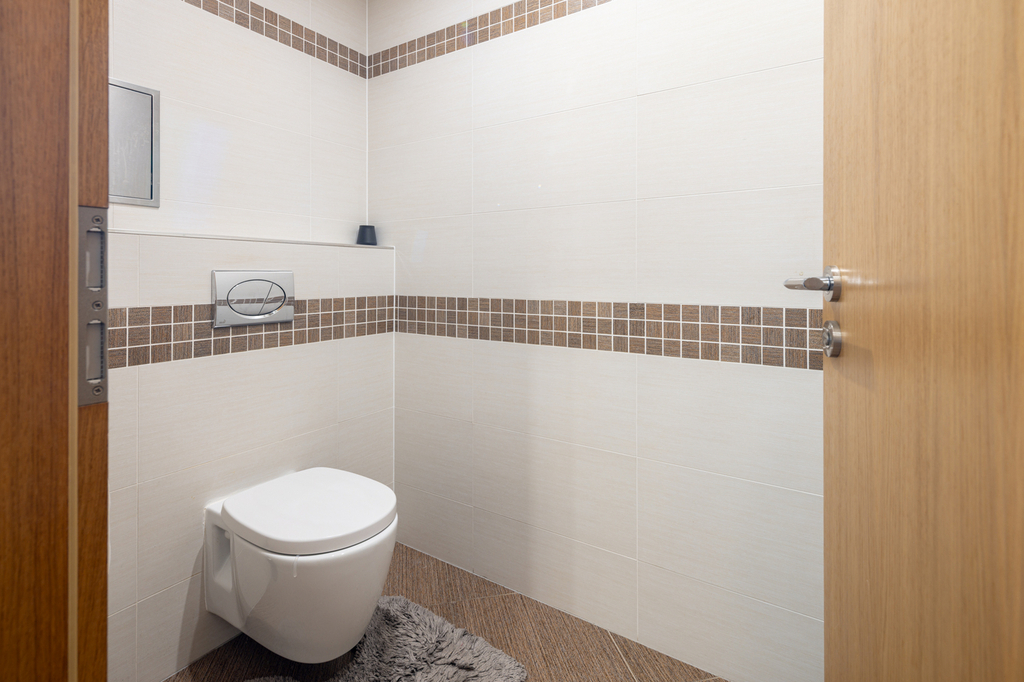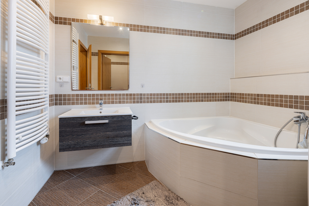 Na ložnici navazuje další pokoj, který v současnosti slouží jako pracovna. I tento pokoj je vybaven zatemňovacími roletami a má přístup na druhý balkón, který je propojený s obývacím pokojem. Koupelna je vybavena prostornou rohovou vanou a je propojena s toaletou, která díky své velikosti nabízí i možnost doplňkového úložného prostoru.