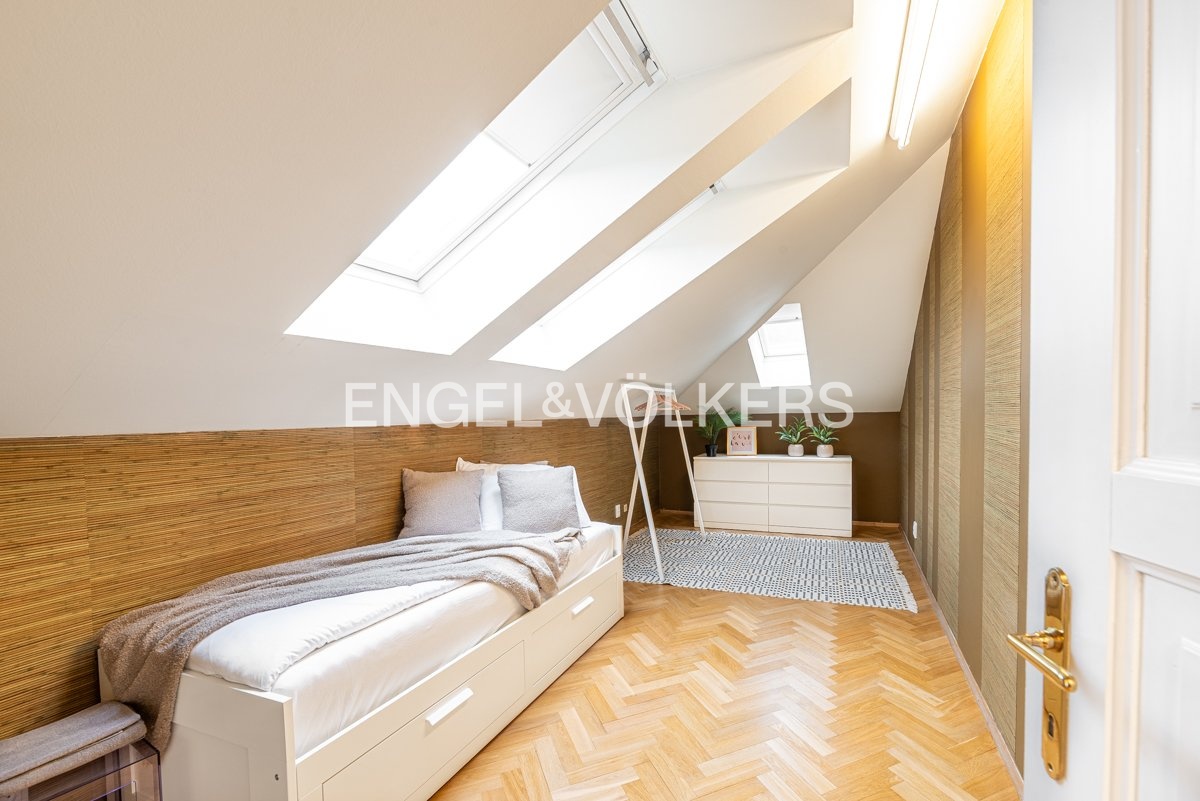 K dlouhodobému pronájmu je připravený výjimečný byt 4+1 v původním činžovním domě s výtahem, situovaný na prestižní adrese v srdci Malé Strany. Díky své poloze v nejvyšším patře a střešním oknům je byt mimořádně světlý a vzdušný. Velkým benefitem je soukromá terasa s dechberoucím výhledem na Národní divadlo, Masarykovo nábřeží a historické centrum Prahy.