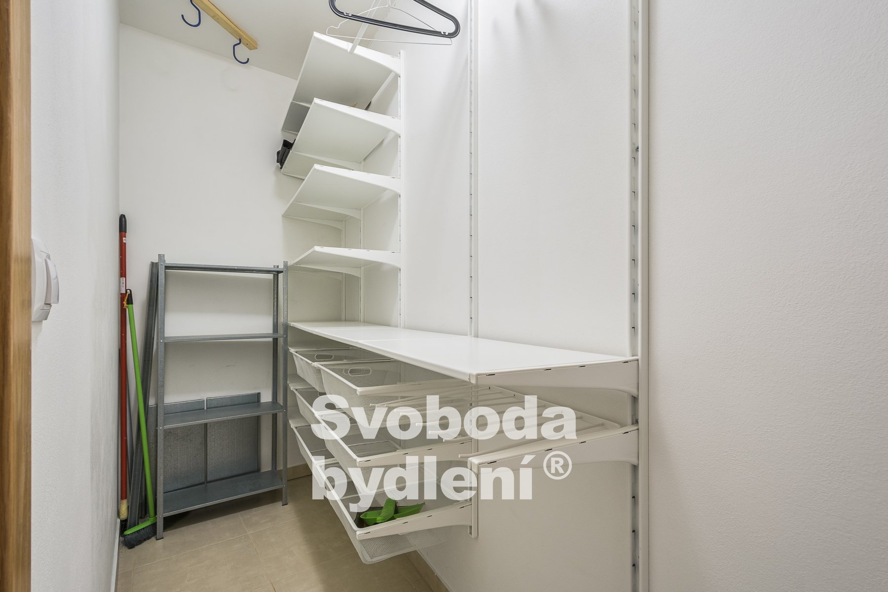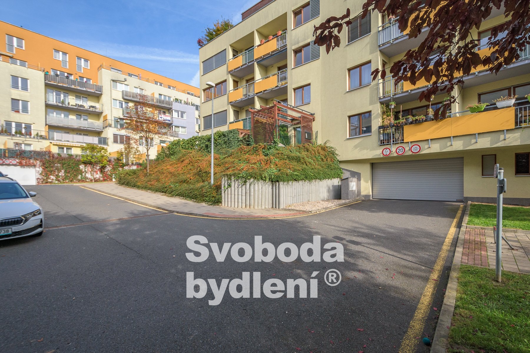 Západně orientovaný obývací pokoj s kuchyňským koutem i ložnice díky dostatečnému prosklení a vstupům na lodžii (cca 4,56m2) s pokračující zahrádkou (cca 37m2) navozuje vzdušný pocit otevřeného prostoru. Díky krajovému umístění bytu i zahrádky zde nalezneme větší soukromí. Moderní kuchyňská linka je vybavena el. vestavnou troubou, varnou deskou, myčkou a digestoří s odvětráním. Koupelna disponuje vanou, je zde prostor na pračku a sušičku. Množství úložných prostor poskytuje komora v bytě i zděná sklepní kóje v 1.PP.