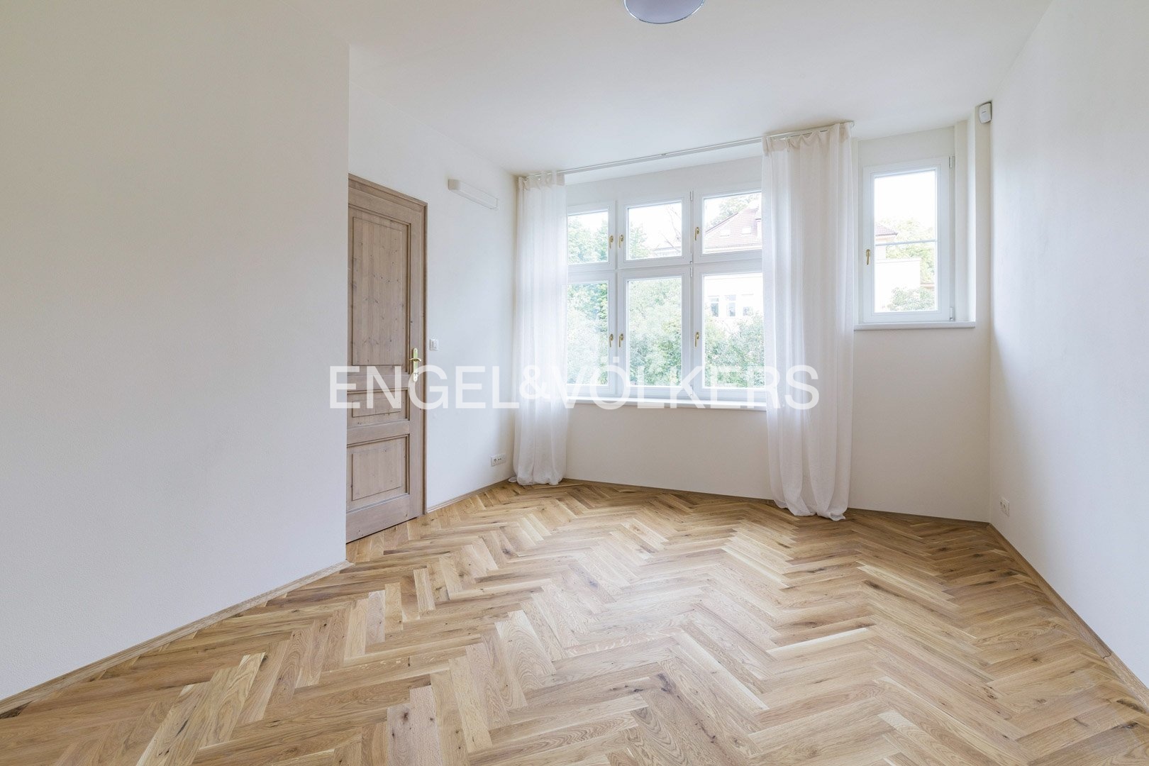 K pronájmu nabízíme exkluzivní byt 4+kk o celkové ploše 120 m², umístěný ve 2. nadzemním podlaží velkolepé vily z období první republiky, která prošla kompletní a citlivou rekonstrukcí.