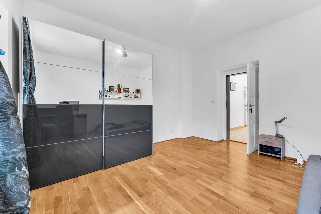 Klidná poloha: Okna bytu směřují na obě strany domu do nerušeného prostoru, což zajišťuje klid i přes centrální polohu.