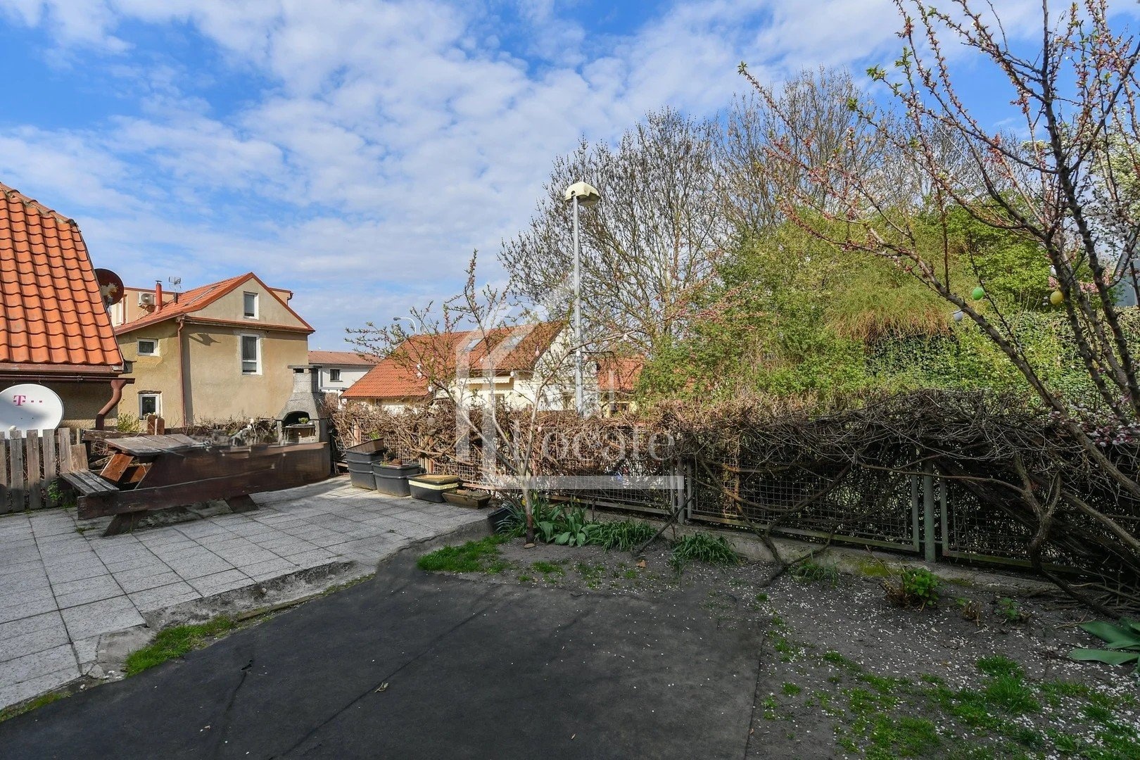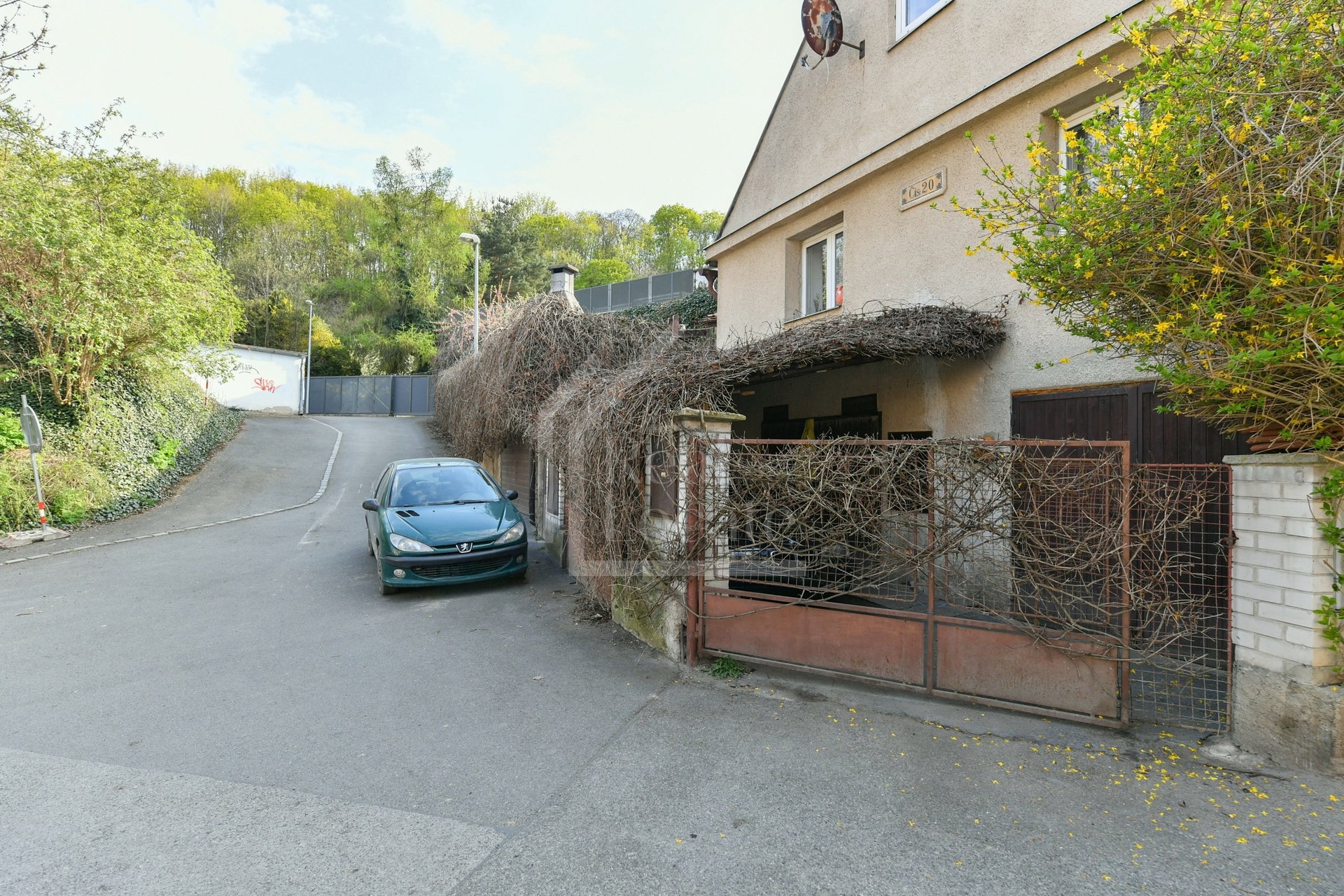 Klidná rezidenční ulice bez rušného provozu.