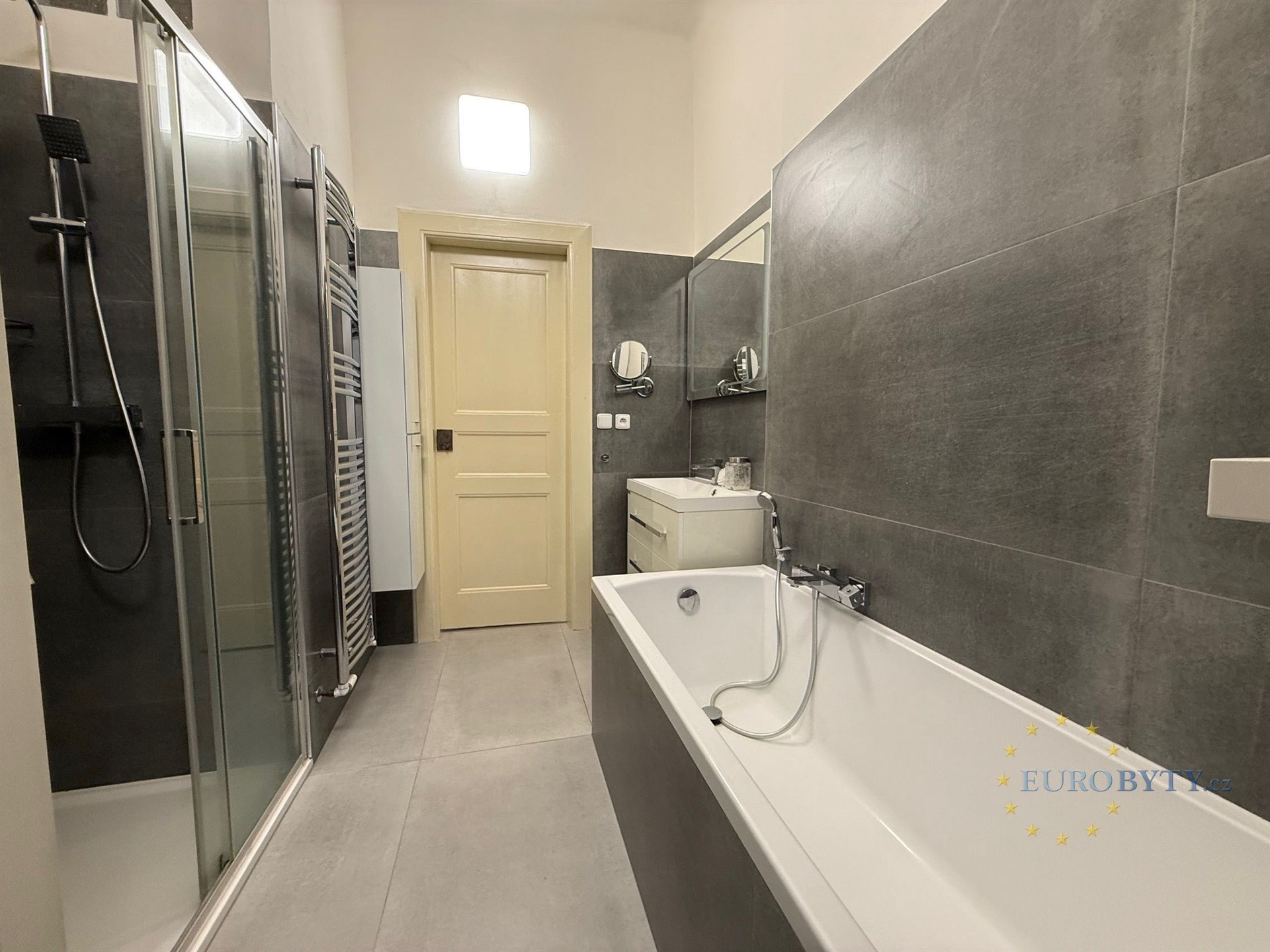 Dovolujeme si Vám exkluzivně nabídnout k pronájmu kompletně rekonstruovaný bytu 2+1 možné i jako 3+kk se vstupní halou o celkovém rozměru 65,6 m2 + 1,5m2 balkónek ve 4 patře bez výtahu. Ihned za vstupními dveřmi je předsíň ze které je přístup do všech místností. Tato předsíň má snížený strop, kde je vybudován úložný prostor. Byt je vybaven kuchyňskou linkou se všemi základními spotřebiči (lednice s mrazákem, myčka nádobí., trouba, varná deska + pračka v koupelně). Dispozice bytu je velmi dobře řešena, kde oba pokoje mají samostatné dveře a jsou neprůchozí. Koupelna je nadstandartní a moderně vybavená, kde nechybí vana a sprchový kout. Z této koupelny je pak přístup na malý balkónek. Okna bytu jsou situována na jižní a severní stranu a jsou opatřená žaluziemi. Vytápění a ohřev vody vlastním plynovým kotlem. Metro Českomoravská jen 5 minut pěšky, stejně jako O2 Aréna. Cena za pronájem 27.000,Kč + vyúčtovatelné poplatky 1.700,Kč a vlastní spotřeba elektřiny a plynu. Možnost k bytu pronajmout parkovací stání za 2.500,Kč. Ihned volný a připraven k nastěhování. Vratná kaucejistota 29 tis, RK 30 tis + DPH. Možno nabídnout i garážové stání nad rámec nájmu cena 2.500Kč ve vedlejším domě. V případě zájmu je majitel bytu ochoten byt dozařídit dle dohody.