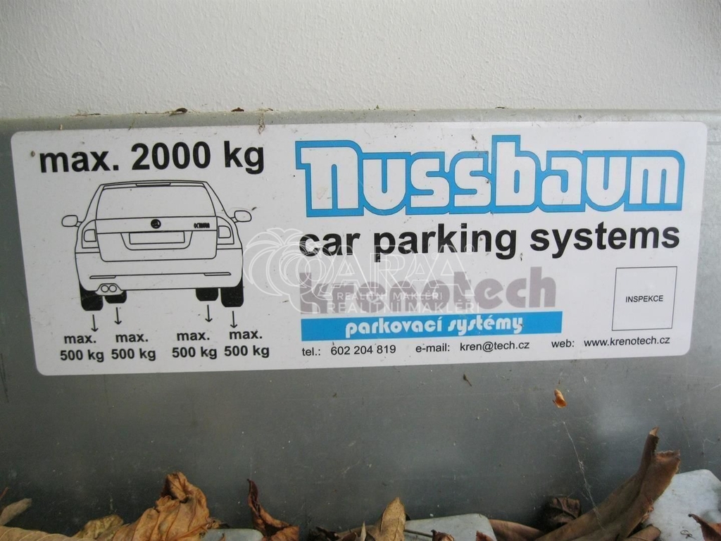 Přístup ke garážovému stání je zajištěn průjezdem domem s dálkovým ovládáním vrat, maximální šířka vozidla 227 cm.