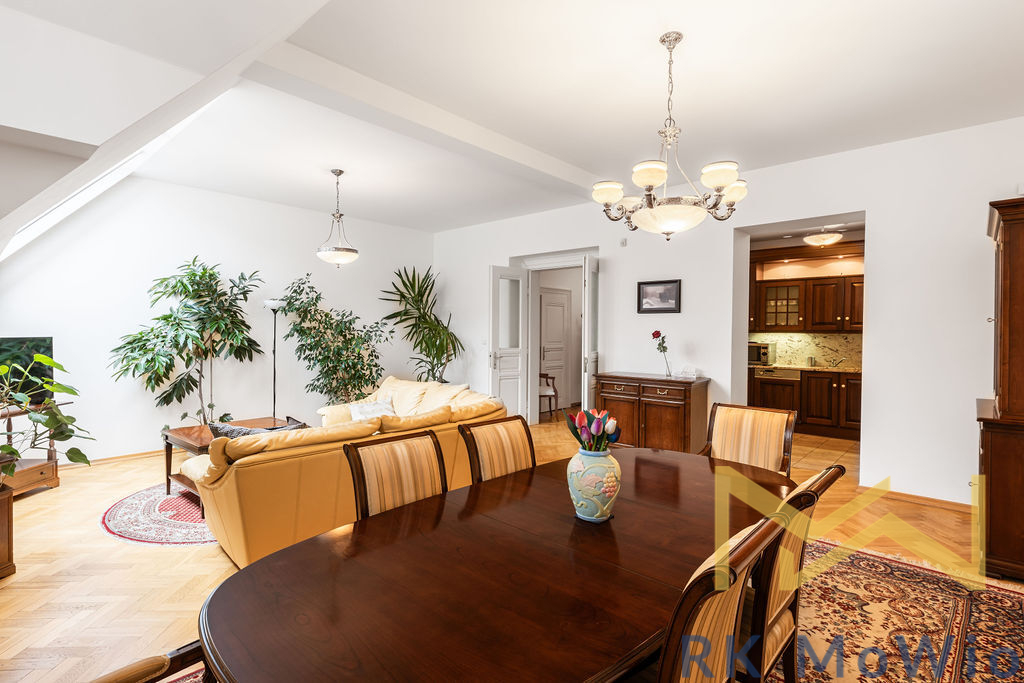 K pronájmu nabízíme designově zařízený byt, o dispozici 3+kk s užitnou plochou 110 m2, s balkónem, situovaný ve 4. patře (5. nadzemní podlaží) secesní budovy s výtahem v ulici Maiselova v lokalitě Prahy 1 - Josefov.