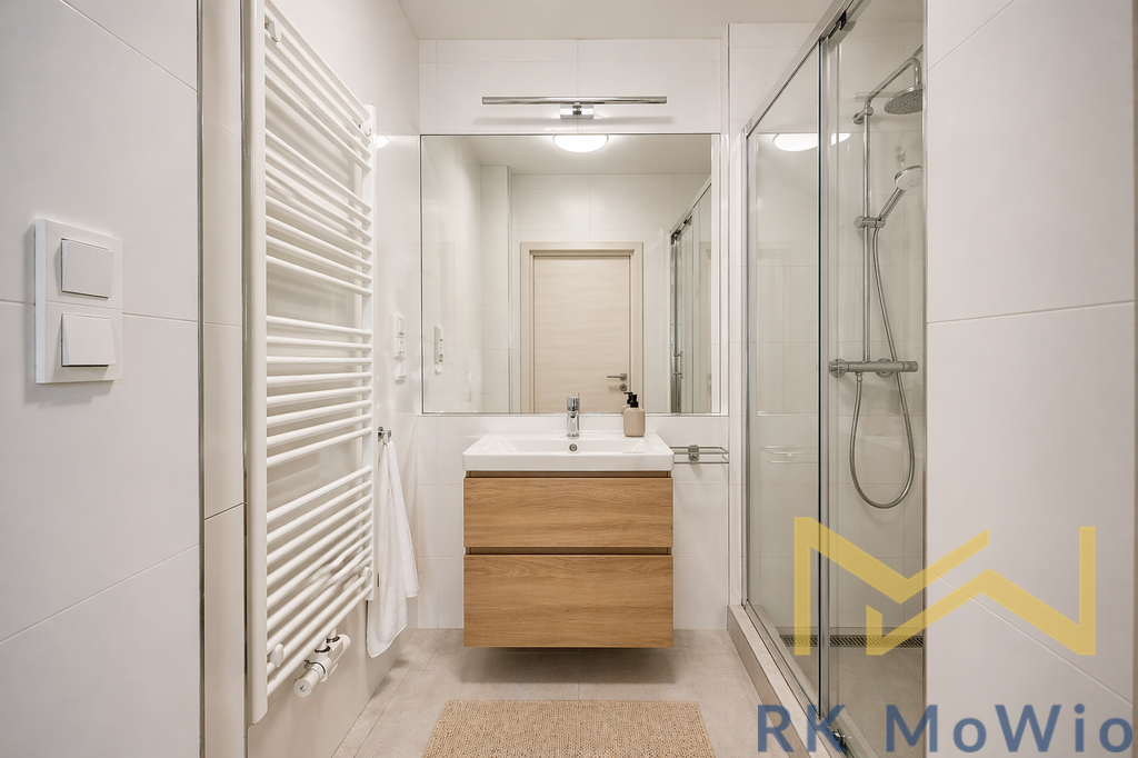 Dispozici bytové jednotky tvoří vstupní chodba, prostorný obývací pokoj s plně vybaveným kuchyňským koutem a jídelní částí, jedna ložnice s vlastní koupelnou (sprchový kout, umyvadlo), samostatná toaleta a technická místnost. Vybavení bytu: kuchyňská linka (včetně lednice s mrazákem, sklokeramické varné desky, digestoře, myčky a elektrické trouby), vestavěné skříně, klimatizace, pračka a sušička. K bytu náleží sklep.