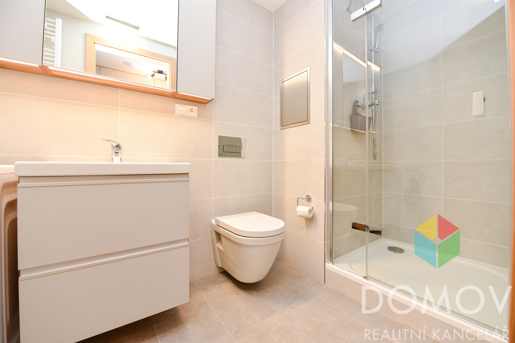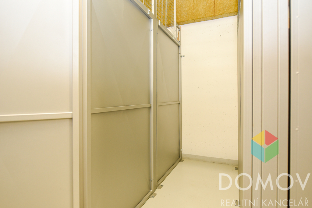 V 1.PP je k dispozici sklep (cca 5m2) s dostatkem místa např. na jízdní kolo, které si můžete umýt v myčce na kola, která je umístěna rovněž ve sklepních prostorách.