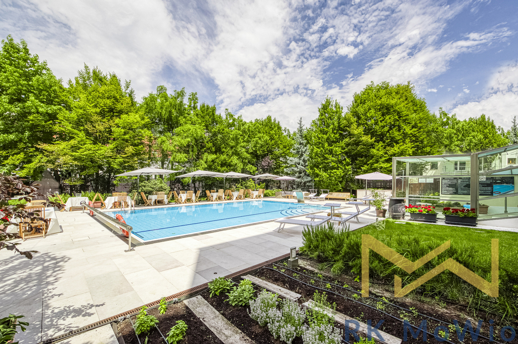 Bytová jednotka nabízí vstupní předsíň, obývací pokoj s jídelní částí, kuchyňský kout, 2 ložnice, 1 koupelnu (s rohovou vanou, umyvadlem a toaletou). Vybavení bytu: kuchyňská linka (včetně lednice s mrazákem, sklokeramické varné desky, digestoře a elektrické trouby), příprava pro vysokorychlostní internet, možnost připojení pračky, dřevěné podlahy a dlažba. K budově náleží zahrada a vyhřívaný venkovní bazén. Možnost pronájmu parkovacího stání za poplatek od 200,- EUR/měsíc + 21% DPH = 242,- EUR/měsíc. Foto je ilustrativní.
