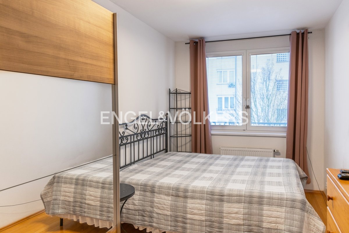 Dispozice bytu nabízí prostornou vstupní chodbu s úložným prostorem, obývací pokoj propojený s kompletně vybavenou kuchyní a vstupem na balkon, ložnici s prostornou skříní, koupelnu s vanou a oddělenou toaletu. V bytě jsou dřevěné podlahy a dostatek úložného prostoru.