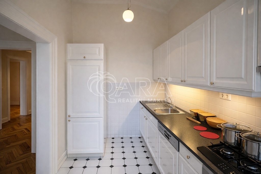 Nabízíme k pronájmu výjimečný, nezařízený byt o dispozici 4+1 a celkové ploše 151 m², se dvěma balkony, situovaný v reprezentativním historickém činžovním domě s recepcí, přímo v prestižní Pařížské ulici. Dům se nachází na jedné z nejluxusnějších adres v Praze, jen pár kroků od Staroměstského náměstí.