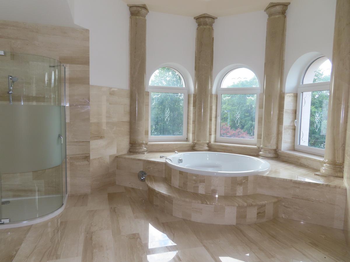Vila je vytápěna plynovým kondenzačním kotlem, je vybavena centrálním vysavačem. Podlahy ve všech obytných podlažích jsou mramorové. Vnější parapety jsou žulové, vnitřní mramorové. Celý dům je obložen travertinem. Vyhřívané okapy jsou samozřejmostí. Podlahy v celém domě jsou samonosné, v případě potřeby je zde možné vybudovat výtah, kterým se dostanete z garáží až do podkroví.