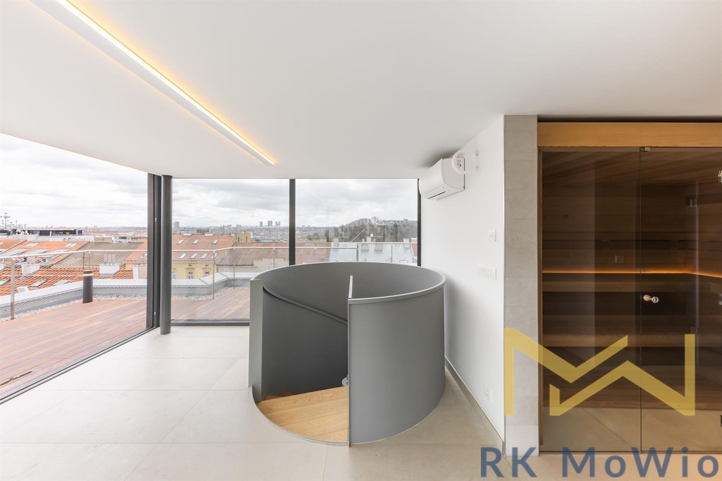 Nabízíme na pronájem moderní mezonetový nezařízený byt číslo č. A 602 o užitné ploše 211 m2, s terasami a zahradou o celkové výměře 110,72 m2, o dispozici 4+kk v 5. a 6. patře (6. a 7. nadzemní podlaží) s výtahem v rezidenci Ellipsis v ulici Holečkova na Praze 5 - Smíchov.