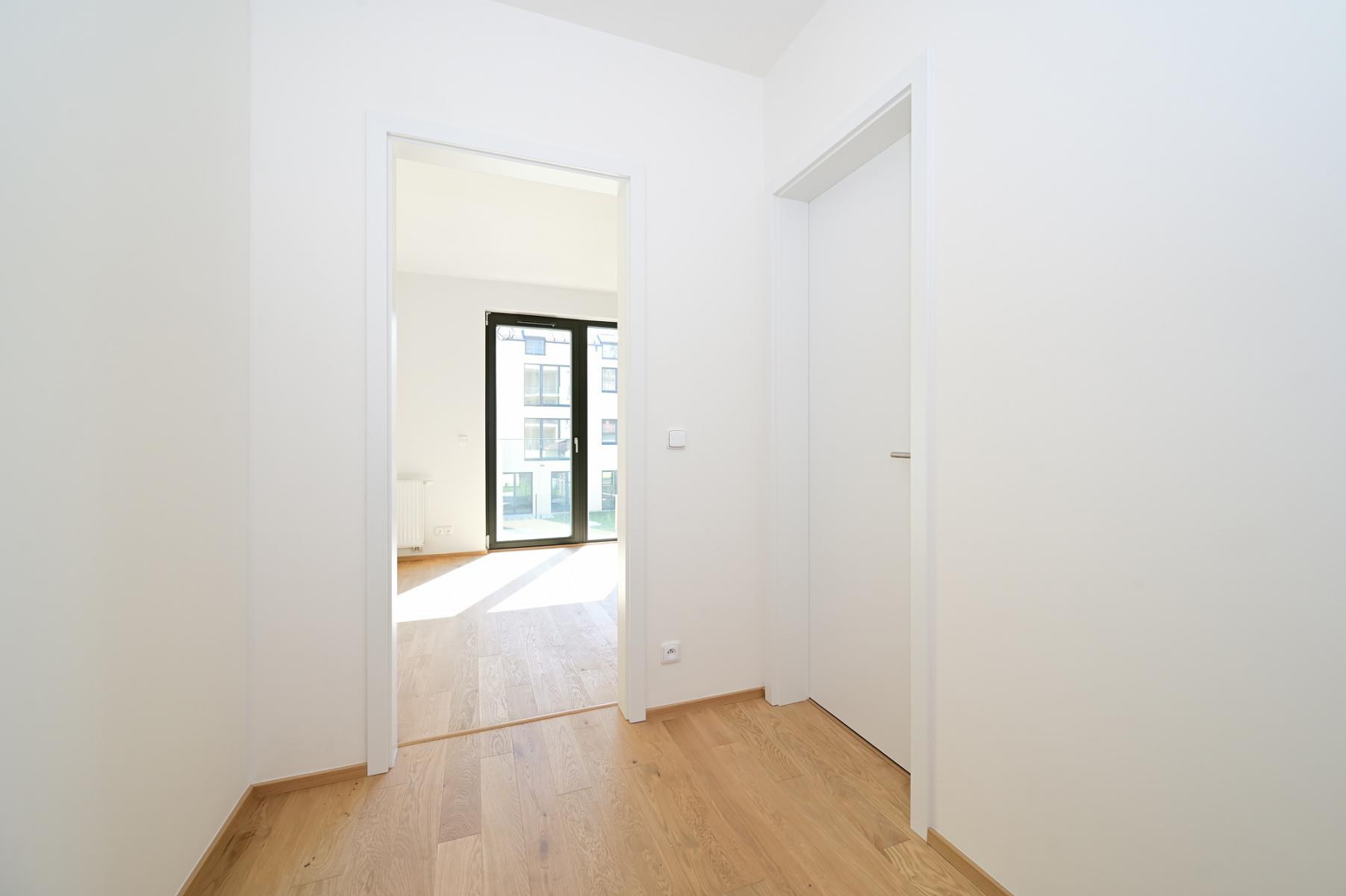 K dlouhodobému pronájmu nabízím světlý byt o dispozici 1+kk s podlahovou plochou 37,59 m and sup2;, který se nachází ve 2. nadzemním podlaží novostavby. Dispozice bytu je řešena velmi prakticky a nabízí vstupní předsíň, koupelnu se sprchovým koutem a toaletou a hlavní obytný prostor s kuchyňskou linkou.