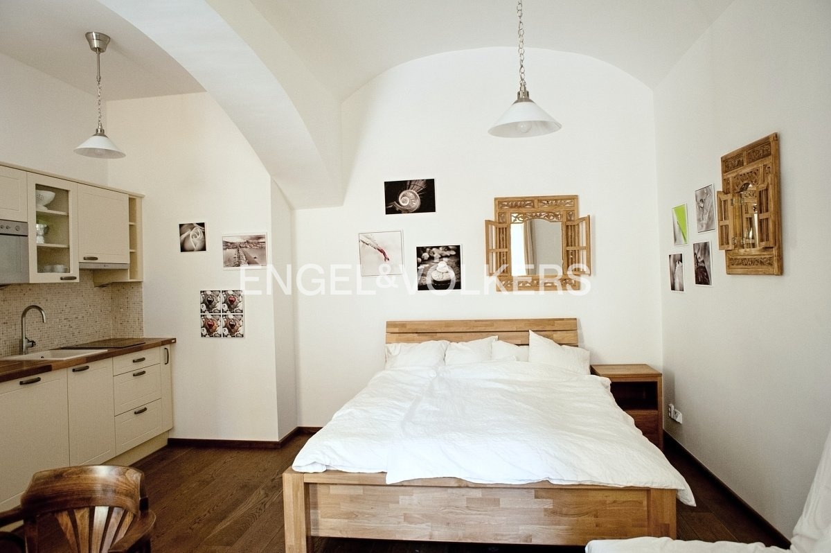 K pronájmu nabízíme moderní a plně vybavený byt 1+kk v atraktivní lokalitě Nové Město, jen pár kroků od náplavky.