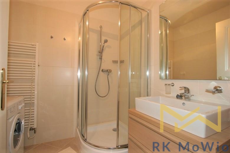 Půdorys bytové jednotky disponuje vstupní předsíní, světlým obývacím pokojem s jídelní částí a plně vybaveným kuchyňským koutem, dvěma ložnicemi a koupelnou (vana, umyvadlo, toaleta). Vybavení bytu: kuchyňská linka (včetně lednice s mrazákem, sklokeramické varné desky a elektrické trouby), možnost instalace pračky a sušičky, příprava pro vysokorychlostní internet, dřevěné podlahy a dlažba. K nájmu náleží zahrada s vyhřívaným bazénem a možnost pronájmu 1 garážového stání za příplatek. Fotografie jsou ilustrativní.