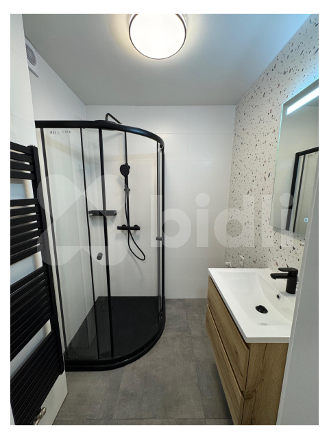 Byt nově po kompletní velmi zdařilé rekonstrukci. Obytná místnost je s kuchyňským koutem (včetně mikrovlnné trouby, horkovzdušné trouby, lednice, bez nádobí). Nové okno přes celou jednu stěnu místnosti. Samostatná toaleta. Koupelna s umyvadlem, zrcadlovou skříňkou, sprchovým koutem. Bezpečnostní dveře. Cena 18.000 Kč měsíčně plus poplatky 4000 Kč a el. převedena na nájemce. K nastěhování ihned.
