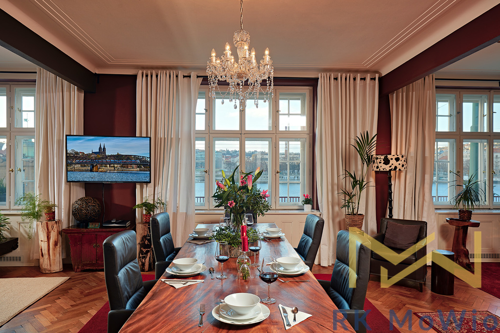Na pronájem nabízíme prostorný byt o dispozici 4+kk o podlahové ploše 187 m², situovaný v 1. patře (2. nadzemní podlaží) budovy, v ulici Na Hrobci na Praze 2 – Nové Město.