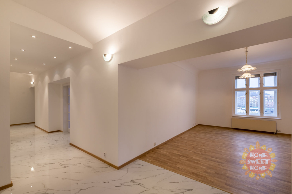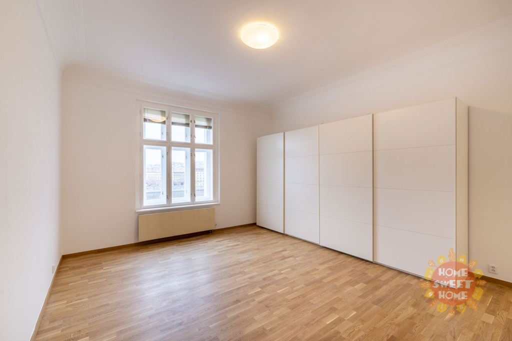 Zcela nově zrekonstruovaný krásný byt 6+1 k pronájmu, nezařízený po kompletní rekonstrukci o celkové výměře 200 m2, který se nalézá ve čtvrtém nadzemním patře nádherného secesního domu s výtahem na Rašínově nábřeží 58, který patří k jedněm z nejkrásnějším domů na nábřeží. V bytě se nachází prostorná vstupní hala s vchody do jednotlivých neprůchozích pokojů, plně zařízená kuchyň (lednice, mrazák, varná deska, digestoř, trouba, myčka na nádobí, vinotéka a pračka), dvě koupelny vybavené (v jedné rohová vana a WC, druhá je se sprchovým koutem). Další WC samostatné zvlášť. Podlahy jsou pokryty novou dřevěnou podlahou a velkoformátovou dlažbou. Nájemníci mají k dispozici vlastní bazén o velikosti 6 x 11 m s celoročním provozem, vířivou lázeň, saunu a posilovnu v prostorách domu. V suterénu je k dispozici kulečník, šipky a malý bar pro příležitostné použití. V domě je 24 hodinová ostraha, která se stará o klidné a nerušené bydlení v domě, společné prostory jsou monitorované kamerou. V přízemí domu se nachází restaurace "U Kalendů" s výbornou kuchyní a také pekárna, kde mají každý den výborné čerstvé a křupavé pečivo. Možnost pronájmu garážového stání v nedalekých garážích za 5.000 Kč/měsíc. Úžasná lokalita v centru Prahy, výborná dostupnost do všech pražských částí, kompletní občanská vybavenost.