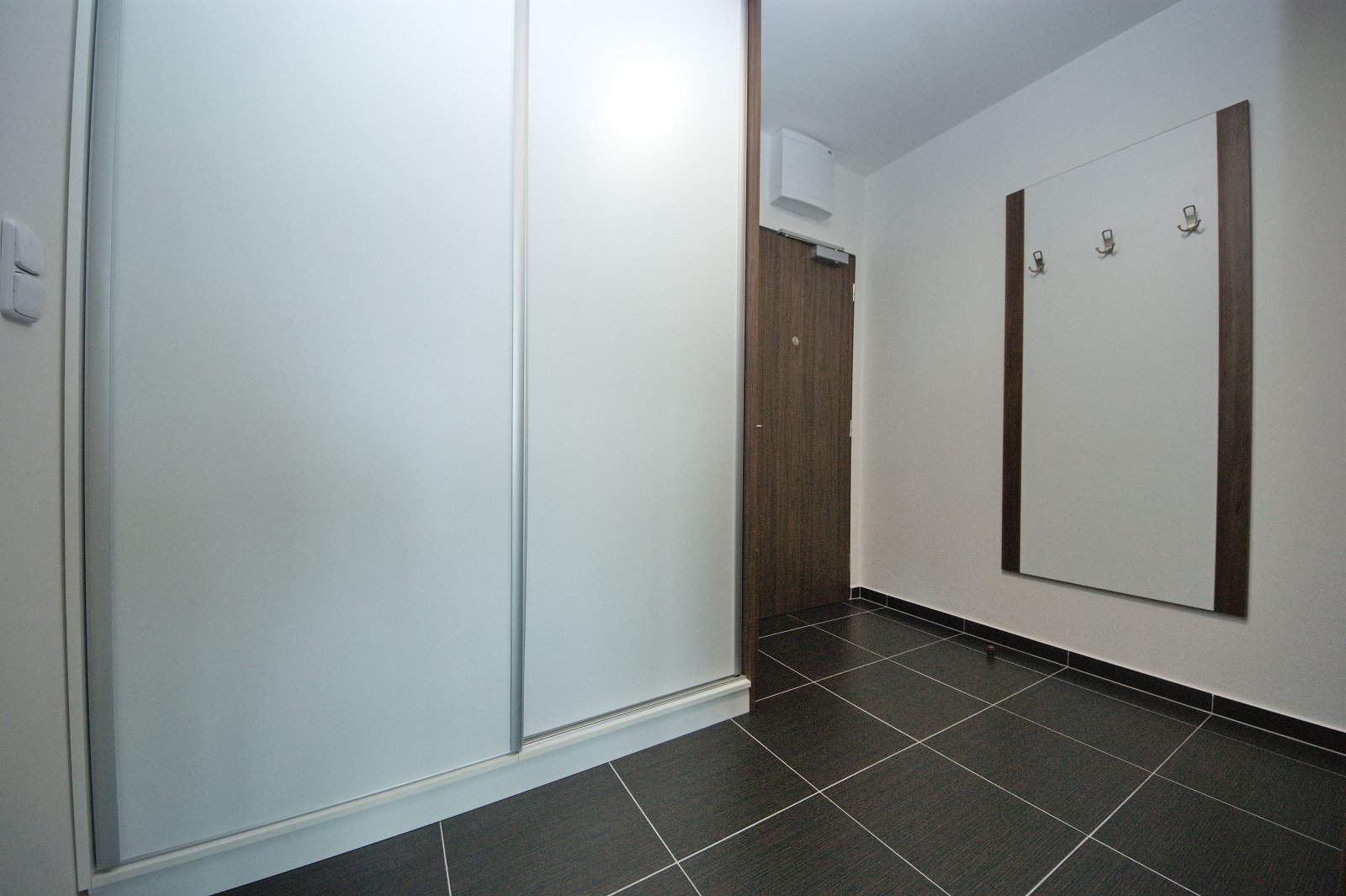 Byt 2+kk (57,5 m2) se zastřešenou terasou (6,8 m2) a garážovým stáním. 7. patro z 8 se dvěma výtahy.