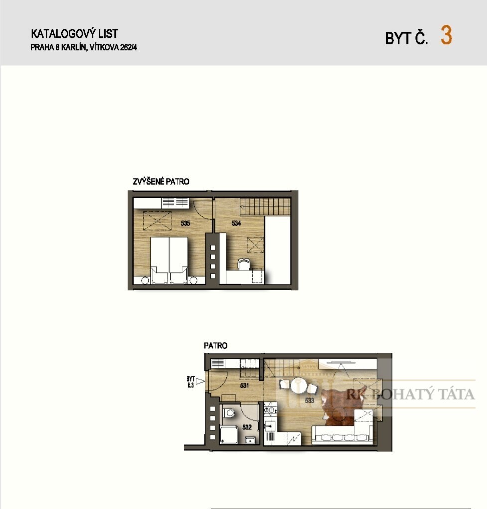 Nový loftový byt 2+kk, cihla, 43 m2, Praha 8 - Karlín, ul. Vítkova.