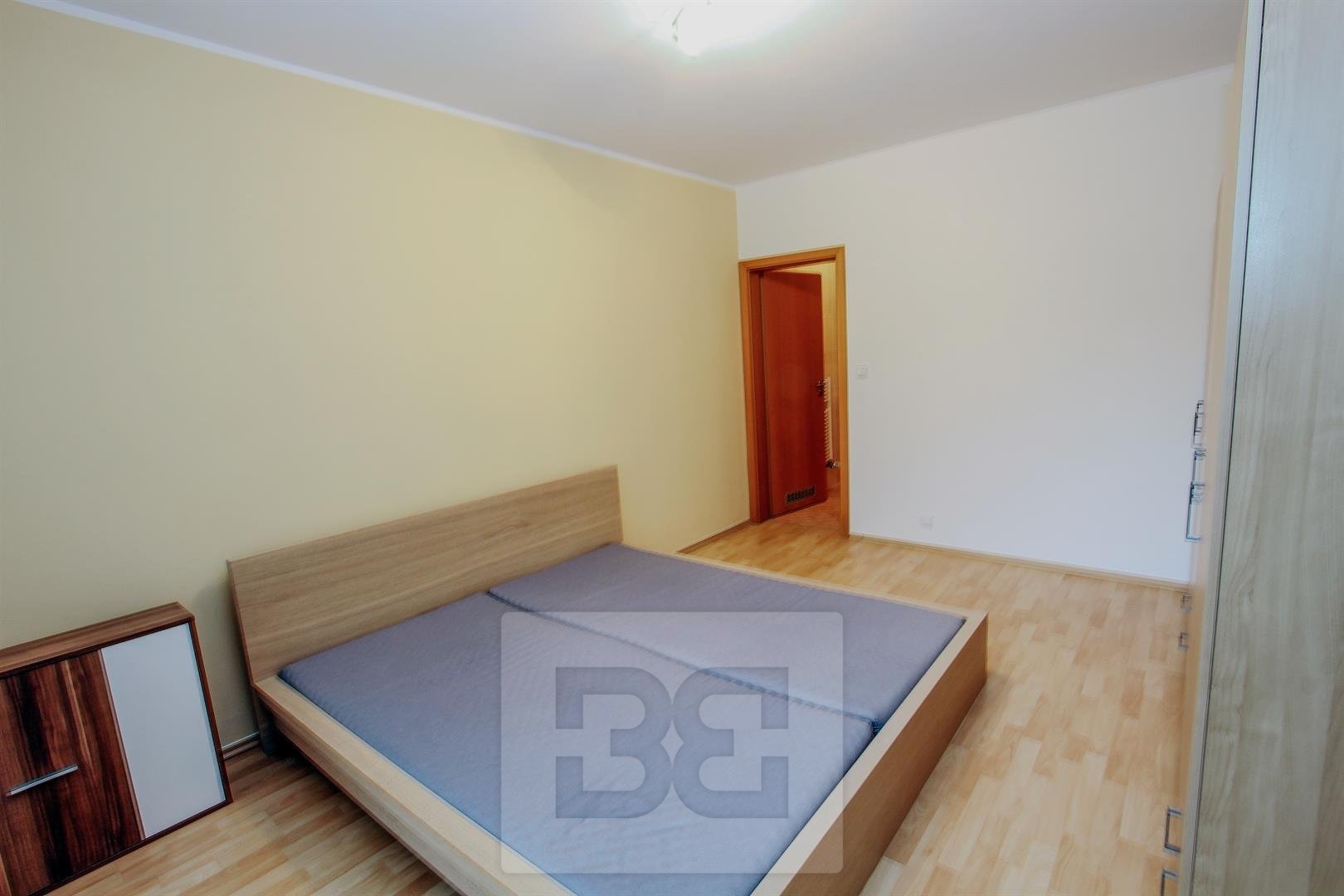 Tento pěkný, dobře řešený byt se skládá z předsíně, obývacího pokoje s kuchyňským koutem včetně vestavěných spotřebičů (lednice s mrazákem, sklokeramická varná deska, horkovzdušná trouba, myčka nádobí, digestoř), ložnice, koupelny a odděleného WC. Obě místnosti disponují velkými francouzskými okny. Součástí vybavení je veškerý nábytek a spotřebiče dle fotografií.