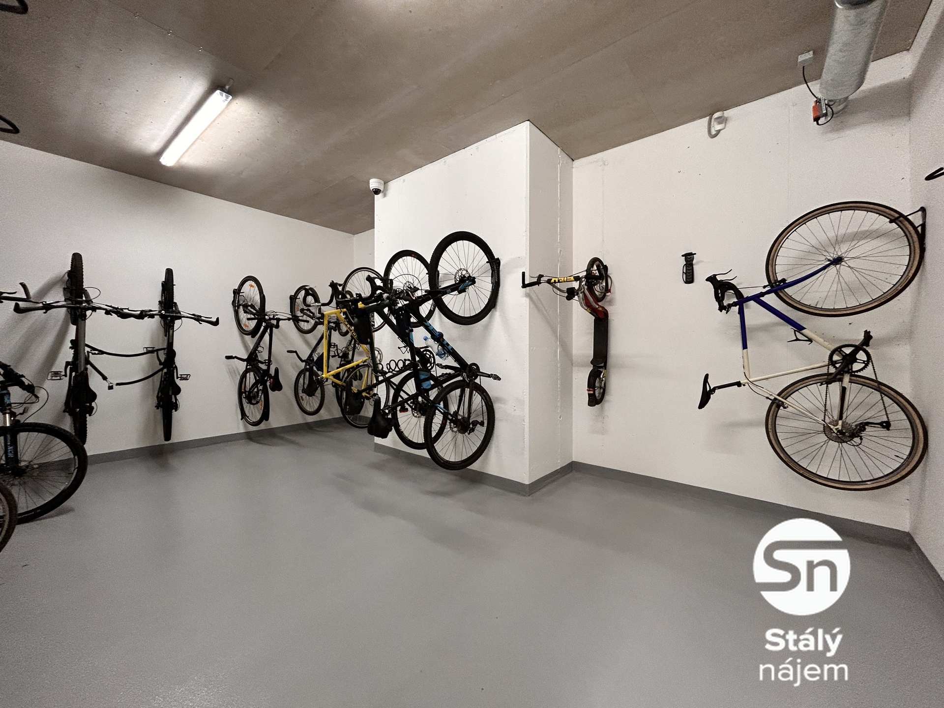 Hlavní místnost tvoří vkusná kuchyňská linka s LED osvětlením, vybavená myčkou, troubou i indukční deskou. Úložné prostory jsou zde vyřešeny nadstandardně – v chodbě najdete velkou vestavěnou skříň a v ložnici další prostornou skříň s posuvnými dveřmi. Přestože k bytu nepatří sklep, v domě je k dispozici velká kolárna.