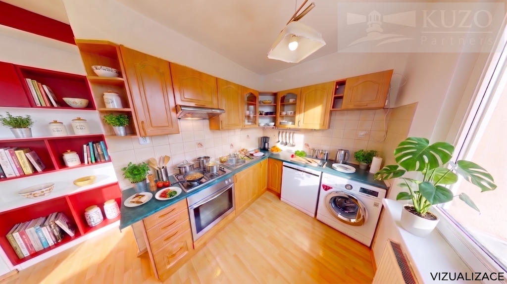 Důležité k fotodokumentaci: Fotografie označené nápisem „VIZUALIZACE“ slouží pro lepší představu o možnostech uspořádání nábytku a potenciálu prostoru. Ostatní fotografie věrně zachycují aktuální stav bytu.